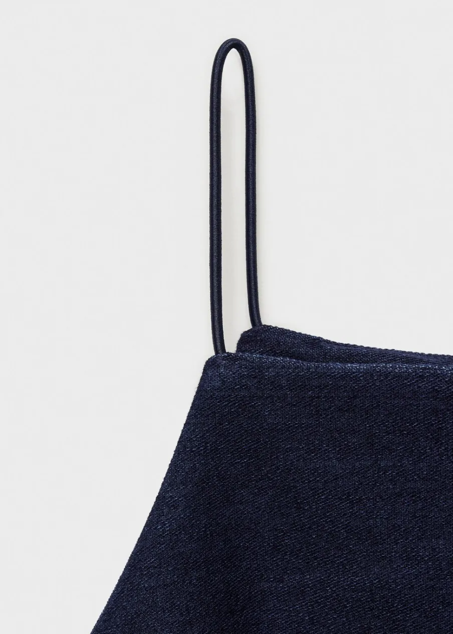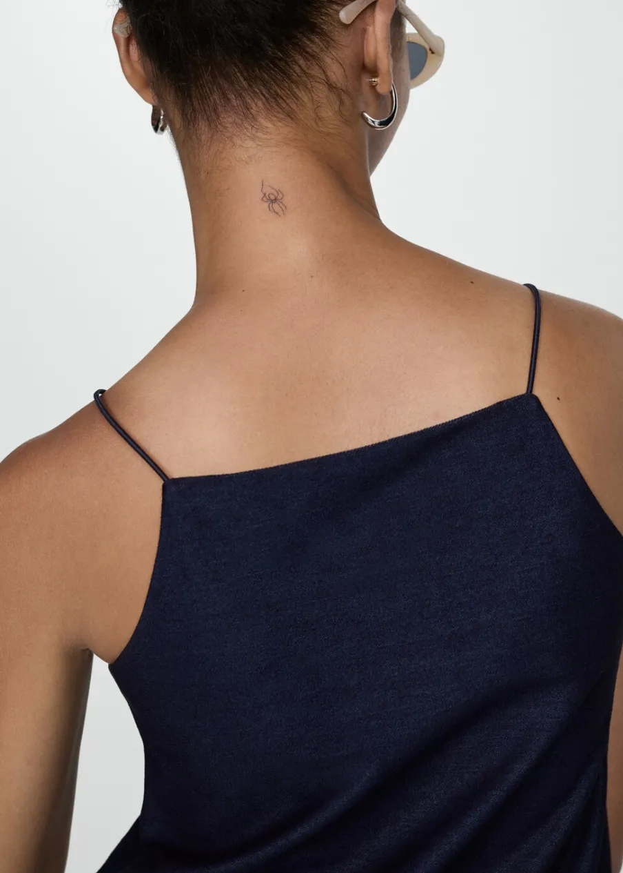 OpisTkanina mieszanka bawełny. Krótki krój. Model prosty. Kwadratowy dekolt. Bez rękawów. Cienkie ramiączka.