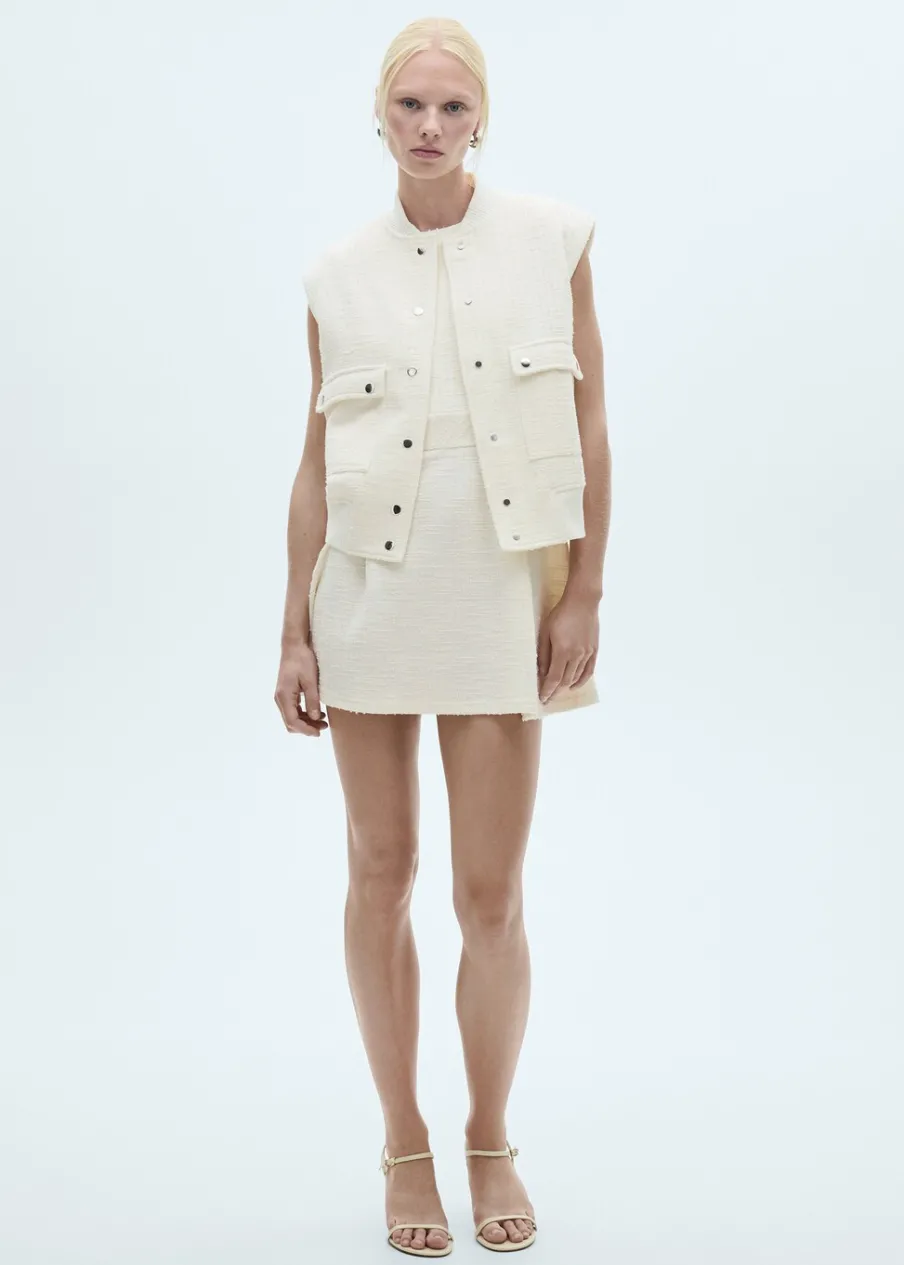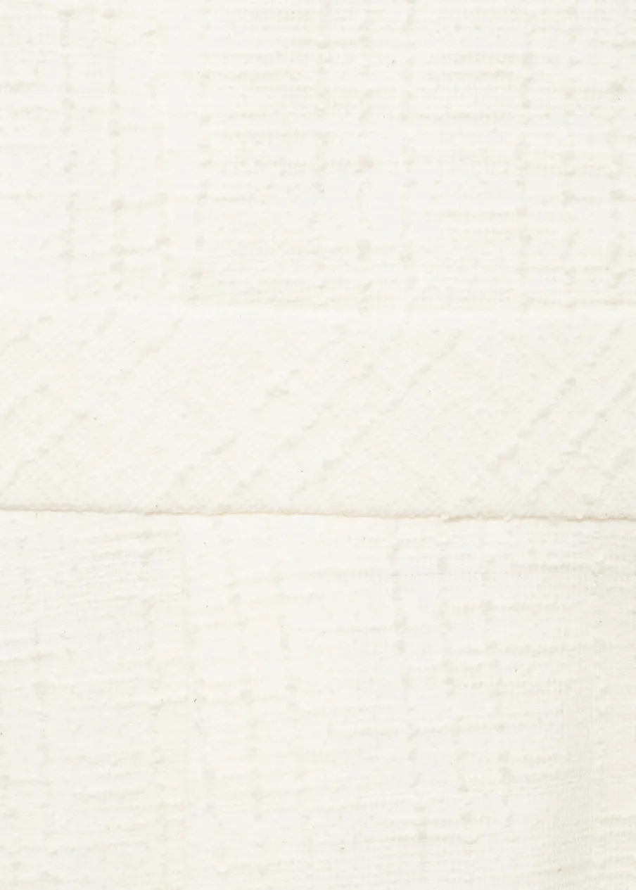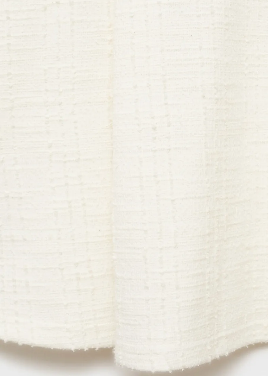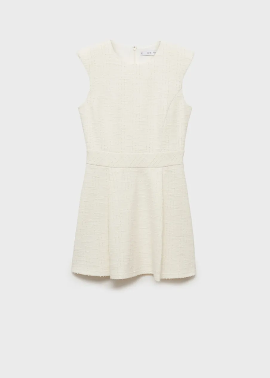 Bez rękawów. Model evasé. Okrągły dekolt. Zapięcie z tyłu na suwak. Wewnętrzna podszewka. Krótki krój. Total look. Tkanina mieszanka bawełny. Teksturowana tkanina. Szerokie ramiączka. Modelka ma 178 cm wzrostu i nosi rozmiar S/36.