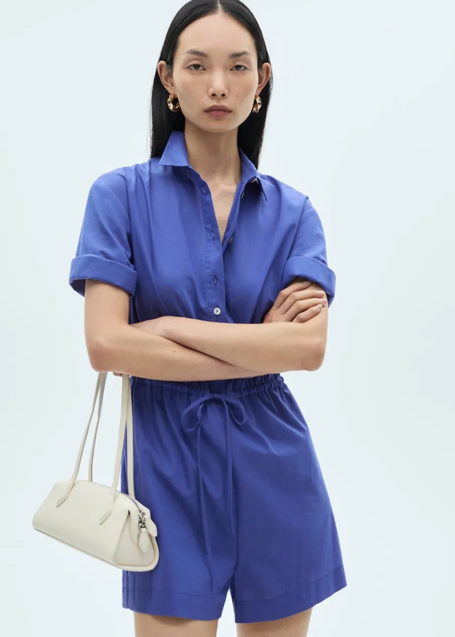 OpisTkanina mieszanka bawełny. Krótki krój. Model prosty. Styl koszulowy. Koszulowy kołnierz. Krótki rękaw. Zapię…