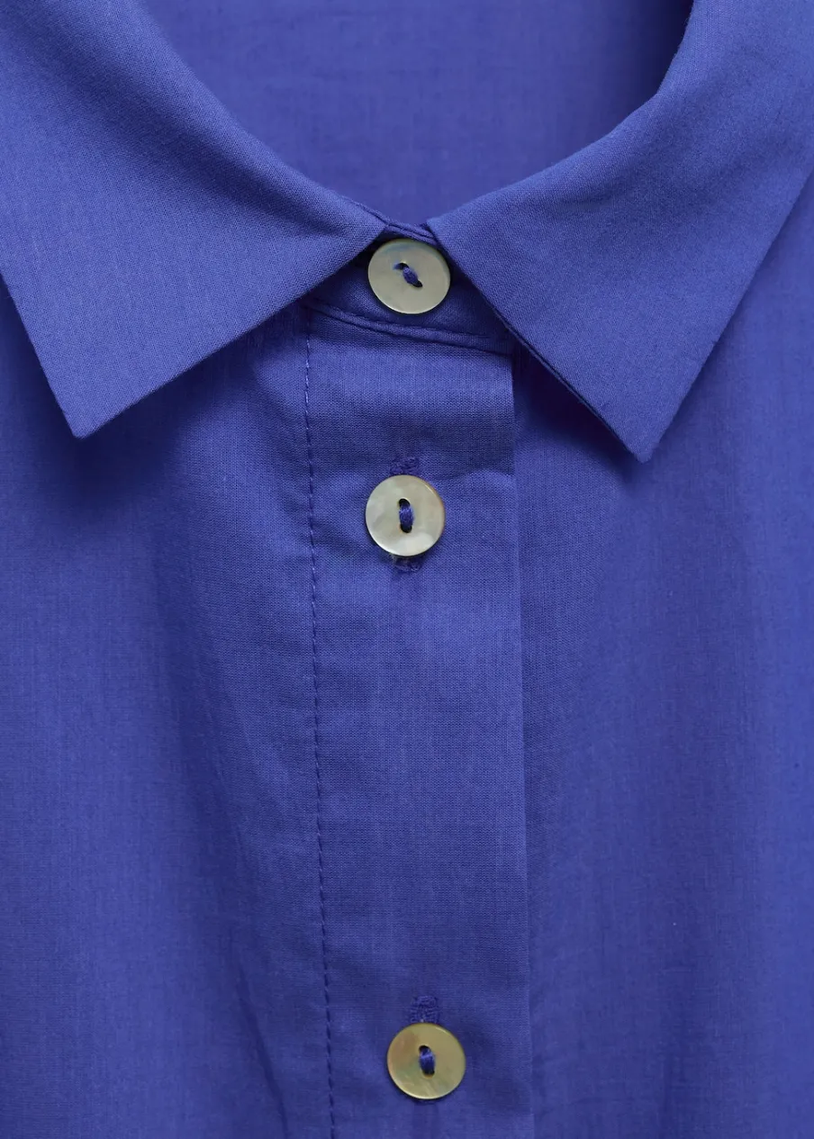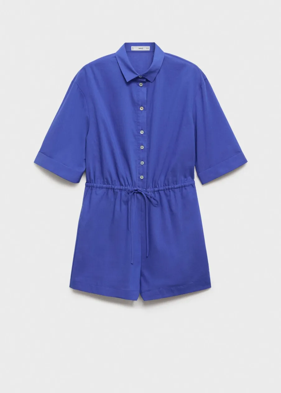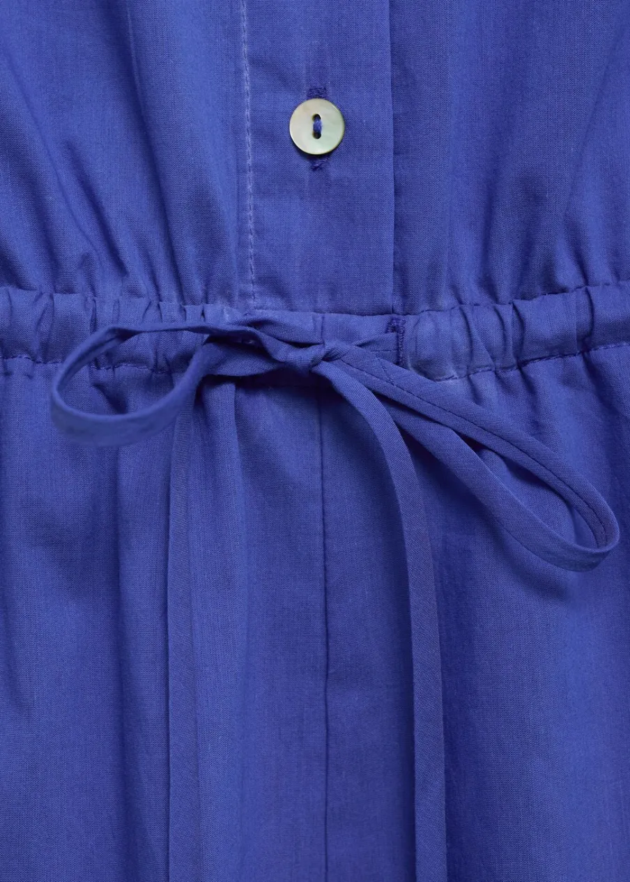 Tkanina mieszanka bawełny. Krótki krój. Model prosty. Styl koszulowy. Koszulowy kołnierz. Krótki rękaw. Zapięcie z przodu na guziki. Odpinane wiązanie w pasie.