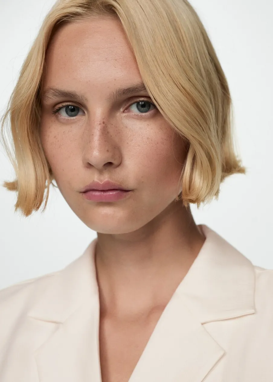 OpisLejąca tkanina. Krótki krój. Model prosty. Kołnierz z klapami. Klapy z nacięciem. Krótki rękaw. Dwie kieszeni…
