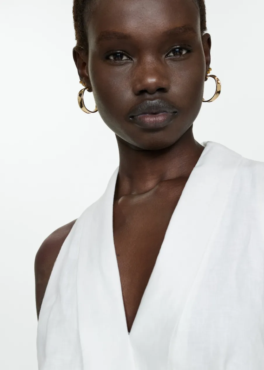 OpisTkanina z 100% lnu. Model evasé. Model długi. Zakładany dekolt. Bez rękawów. Szlufki. Zapięcie z boku. Kryte z…