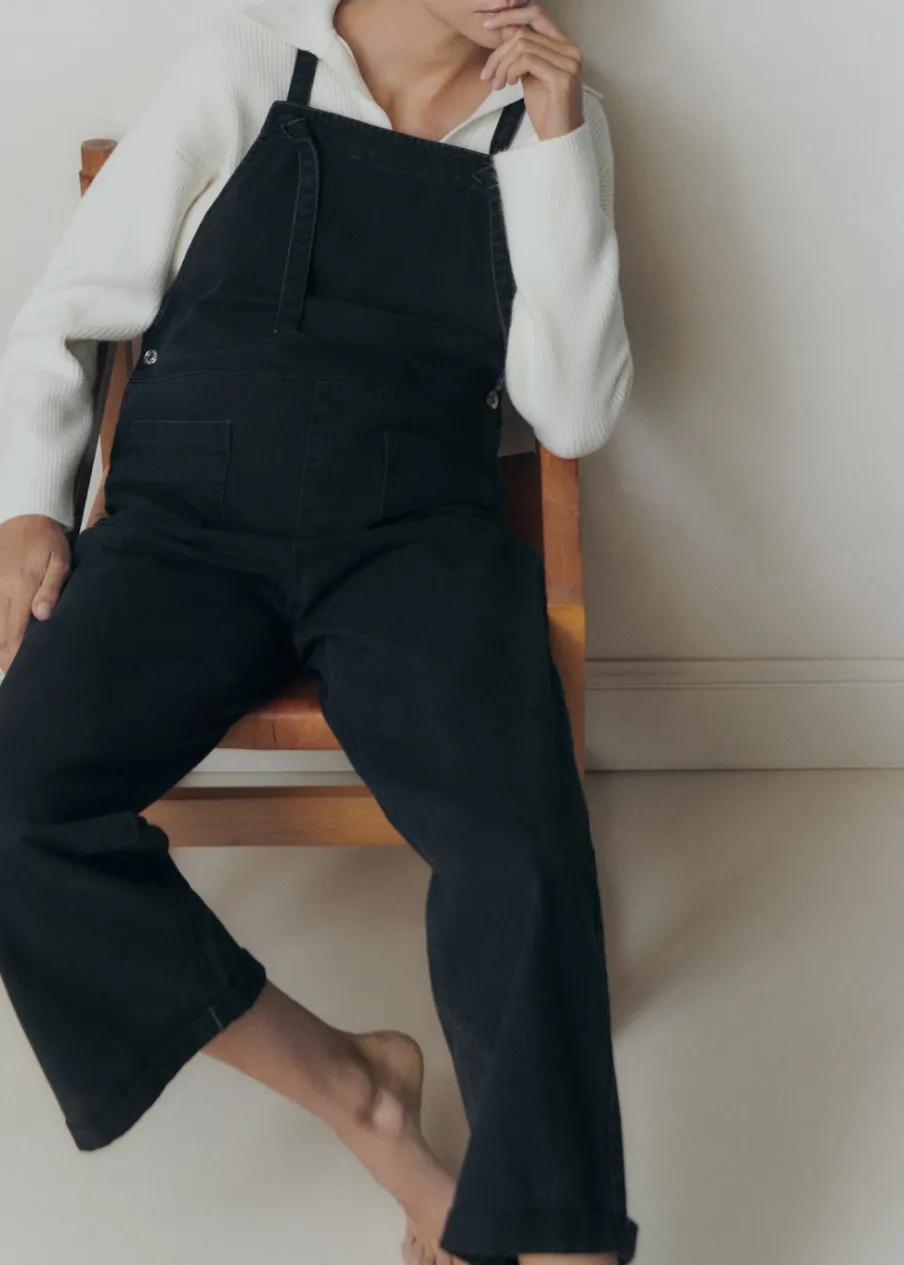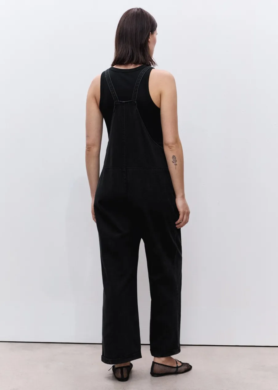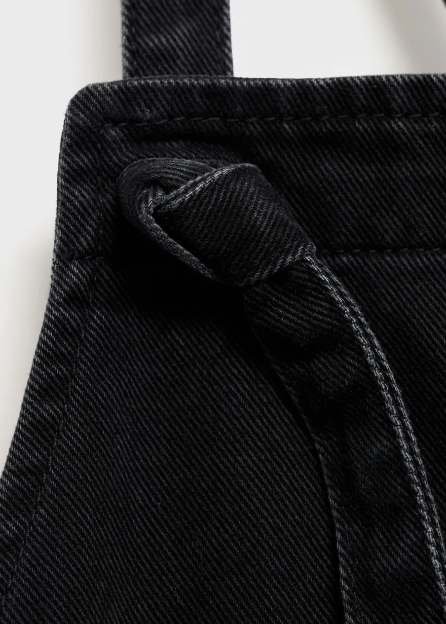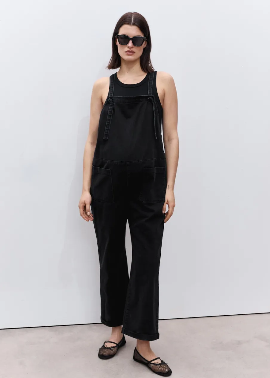 Tkanina bawełniana w dżinsowym stylu. Model długi. Model prosty. Prosty dekolt. Ramiączka skrzyżowane na plecach. Dwie kieszenie nakładane po bokach. Dwie kieszenie nakładane z tyłu. Zapięcie na boczne guziki. Długość wewnętrzna 68 cm. Polecamy kupić zwyczajowy rozmiar. Zapewnia wygodę i swobodę ruchów. Odzież ciążowa. Modelka ma 178 cm wzrostu i nosi rozmiar S/36. Bez rękawów.