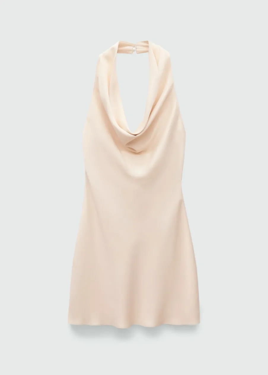 OpisSatynowa tkanina. Lejąca tkanina. Model prosty. Krótki krój. Drapowany dekolt. Bez rękawów. Plecy z wycięciem….