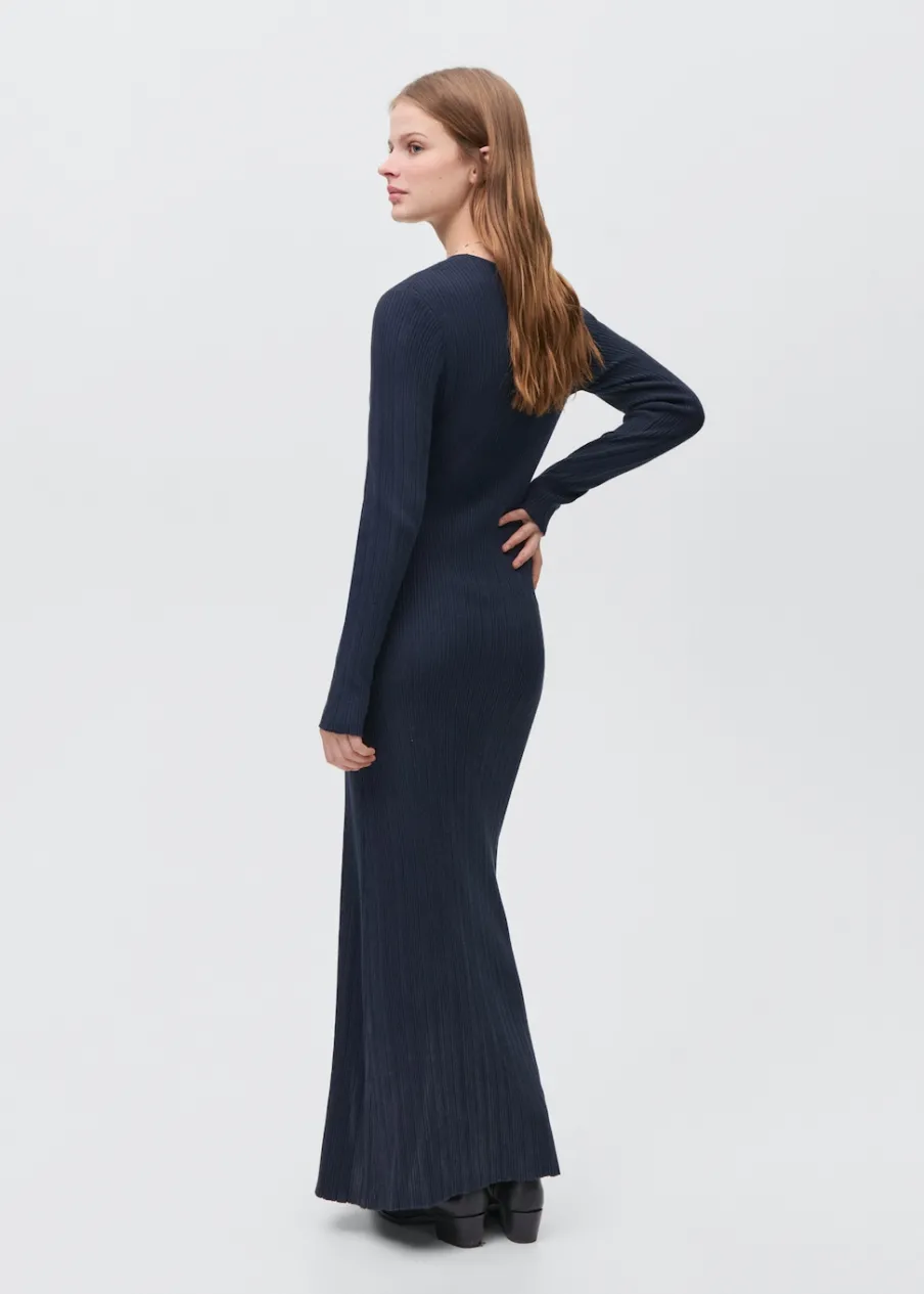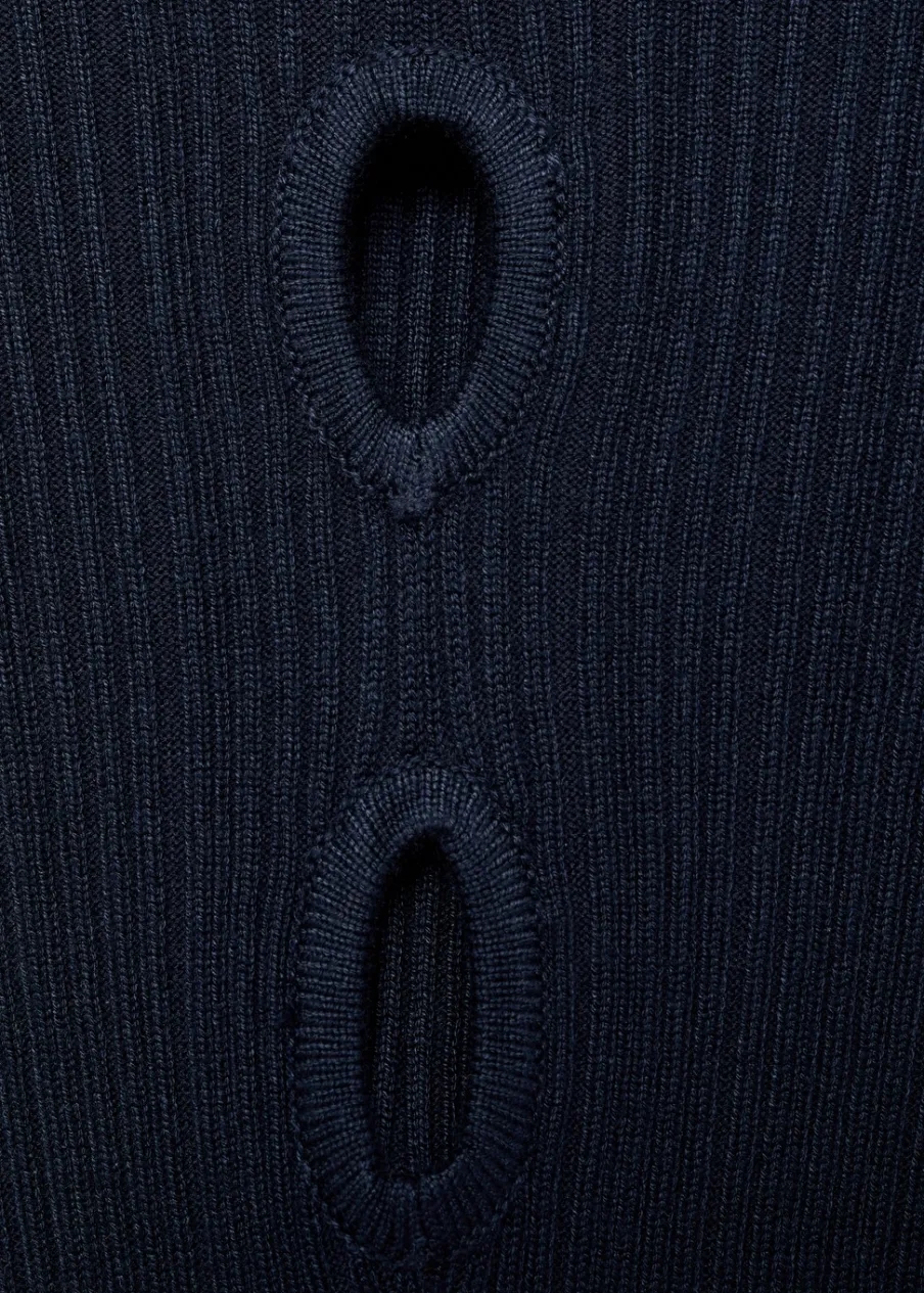 OpisModel długi. Ściągaczowa dzianina. Model wcięty. Ażurowy detal. Długi rękaw. Okrągły dekolt. Bez zapięcia.