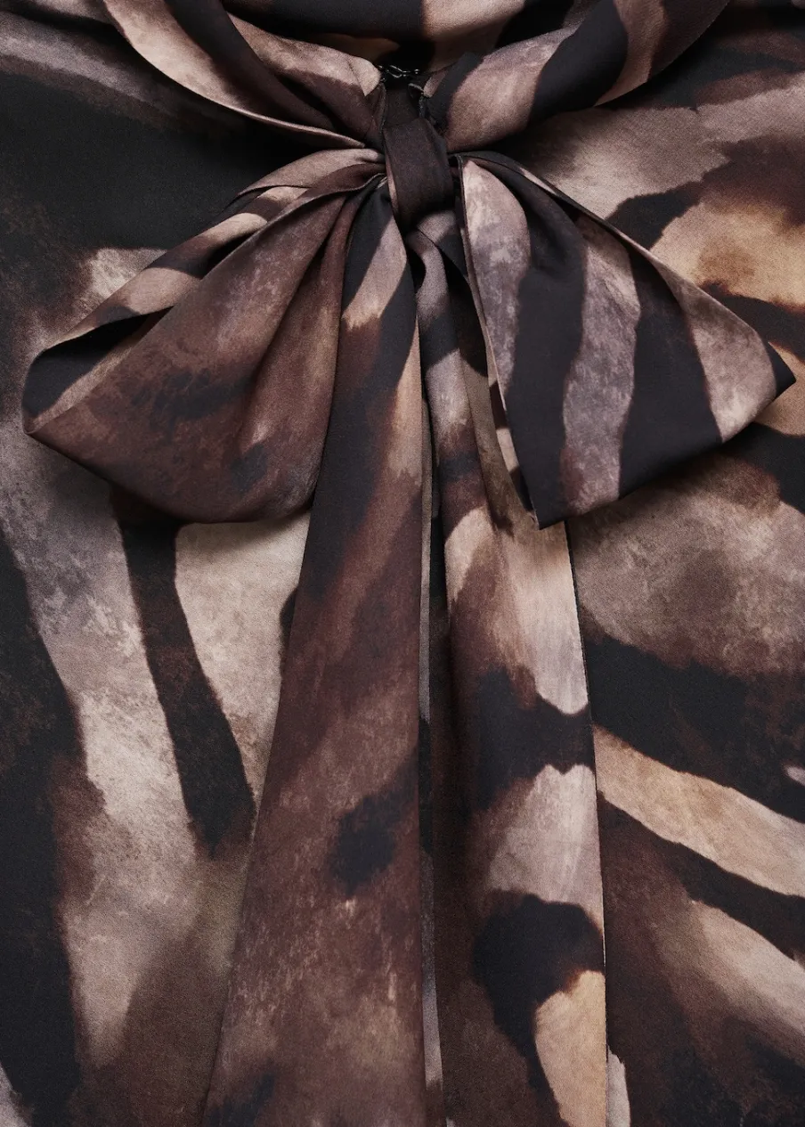 OpisLejąca tkanina z satynowym wykończeniem. Krótki krój. Model evasé. Zwierzęcy wzór. Wzór w zebrę. Drapowany …