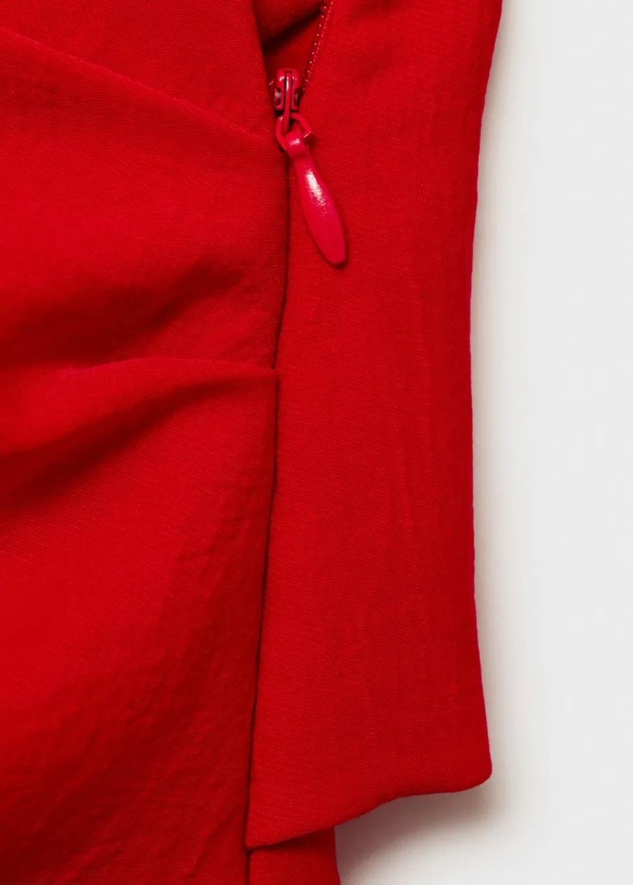 Lejąca tkanina. Asymetryczny krój. Krój do kolan. Slim-fit. Asymetryczny dekolt. Długi rękaw. Drapowana talia. Zapięcie na zamek z boku. Kolekcja wizytowa.