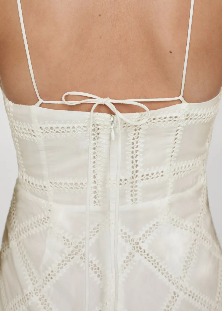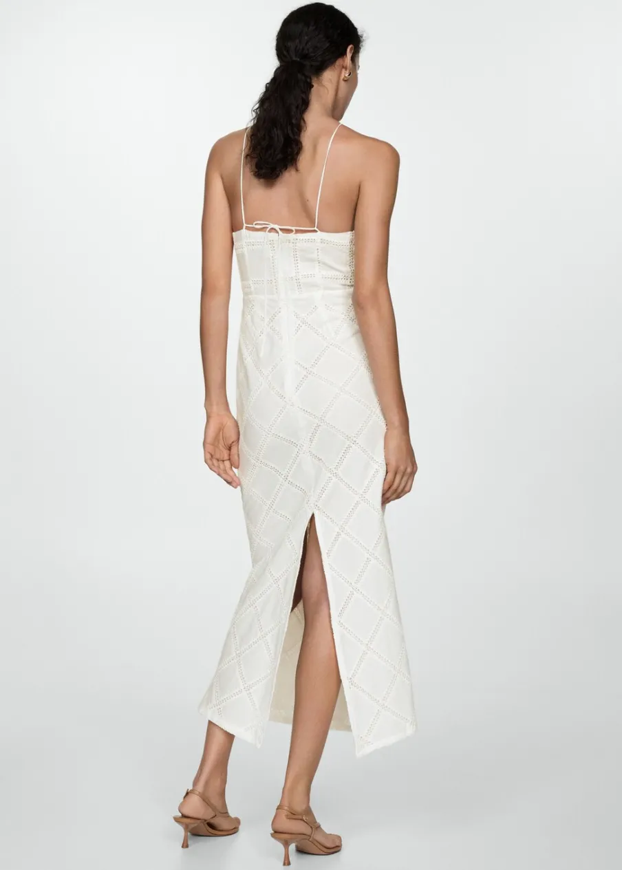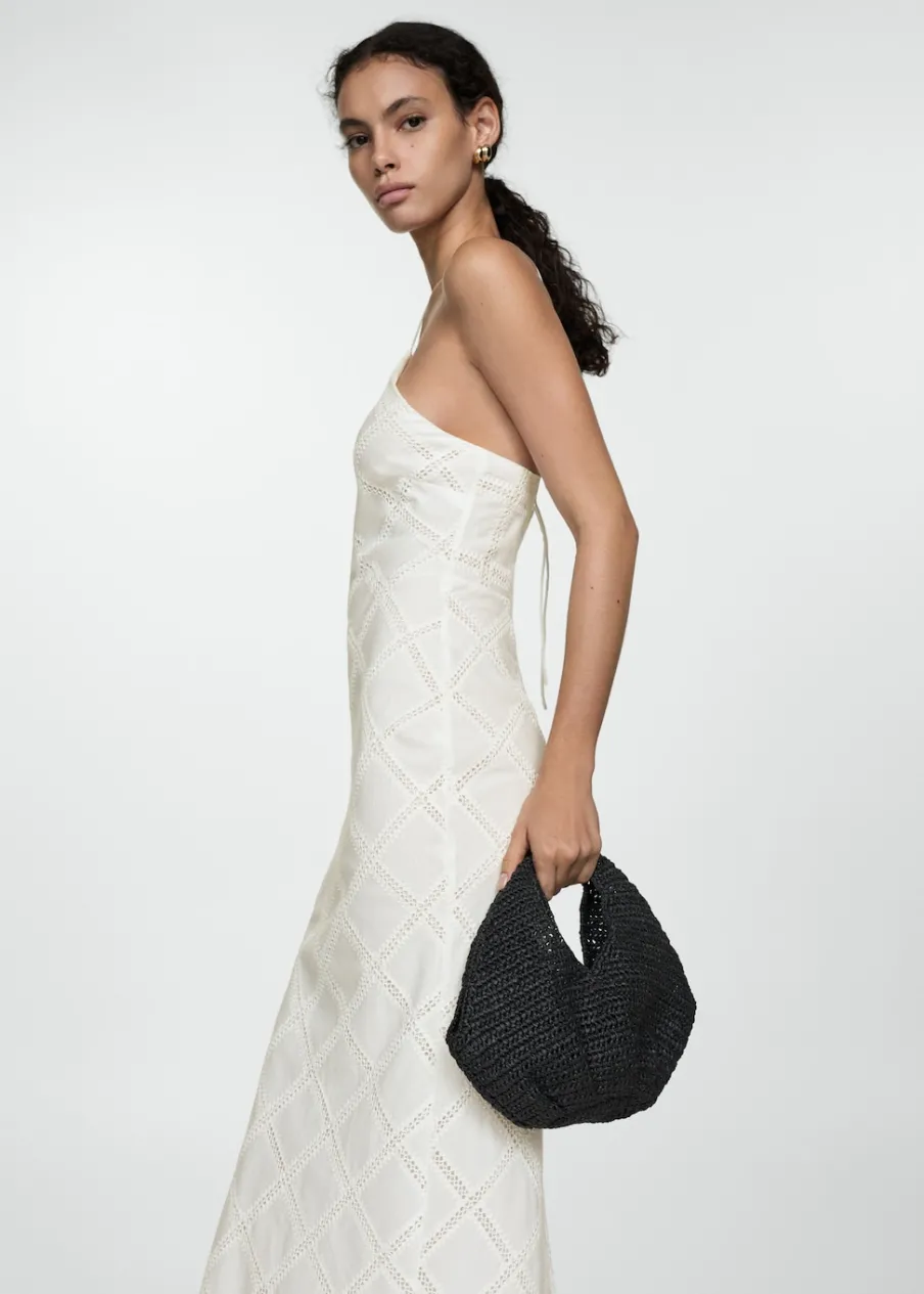 Tkanina mieszanka bawełny. Model prosty. Model długi. Dekolt w stylu halter. Bez rękawów. Cienkie ramiączka. Wiązanie z tyłu. Zapięcie z tyłu na kryty suwak. Detal z rozcięciem z tyłu. Wewnętrzna podszewka. Kolekcja wizytowa. Haftowany motyw.
