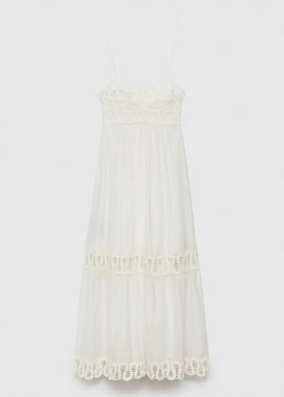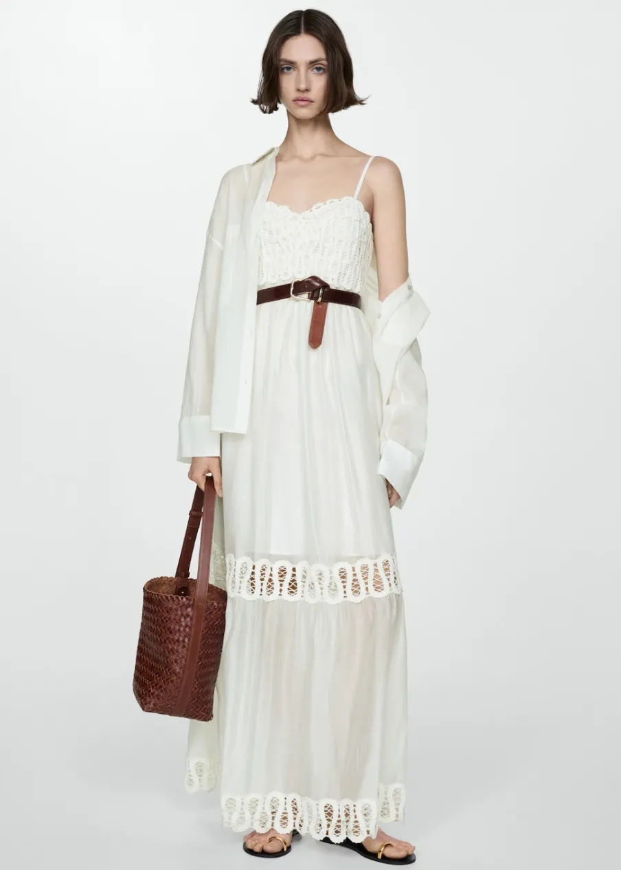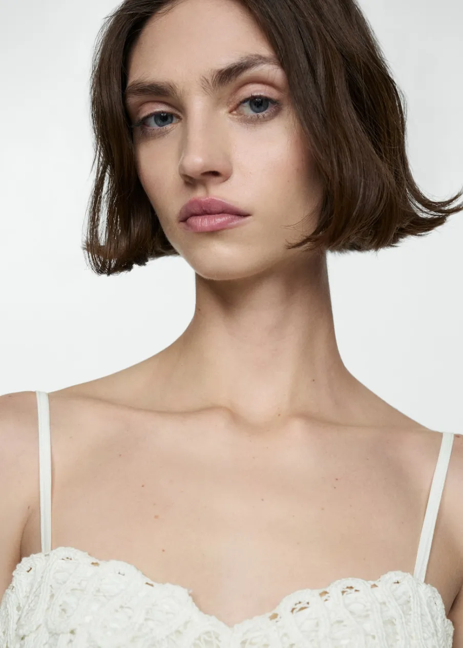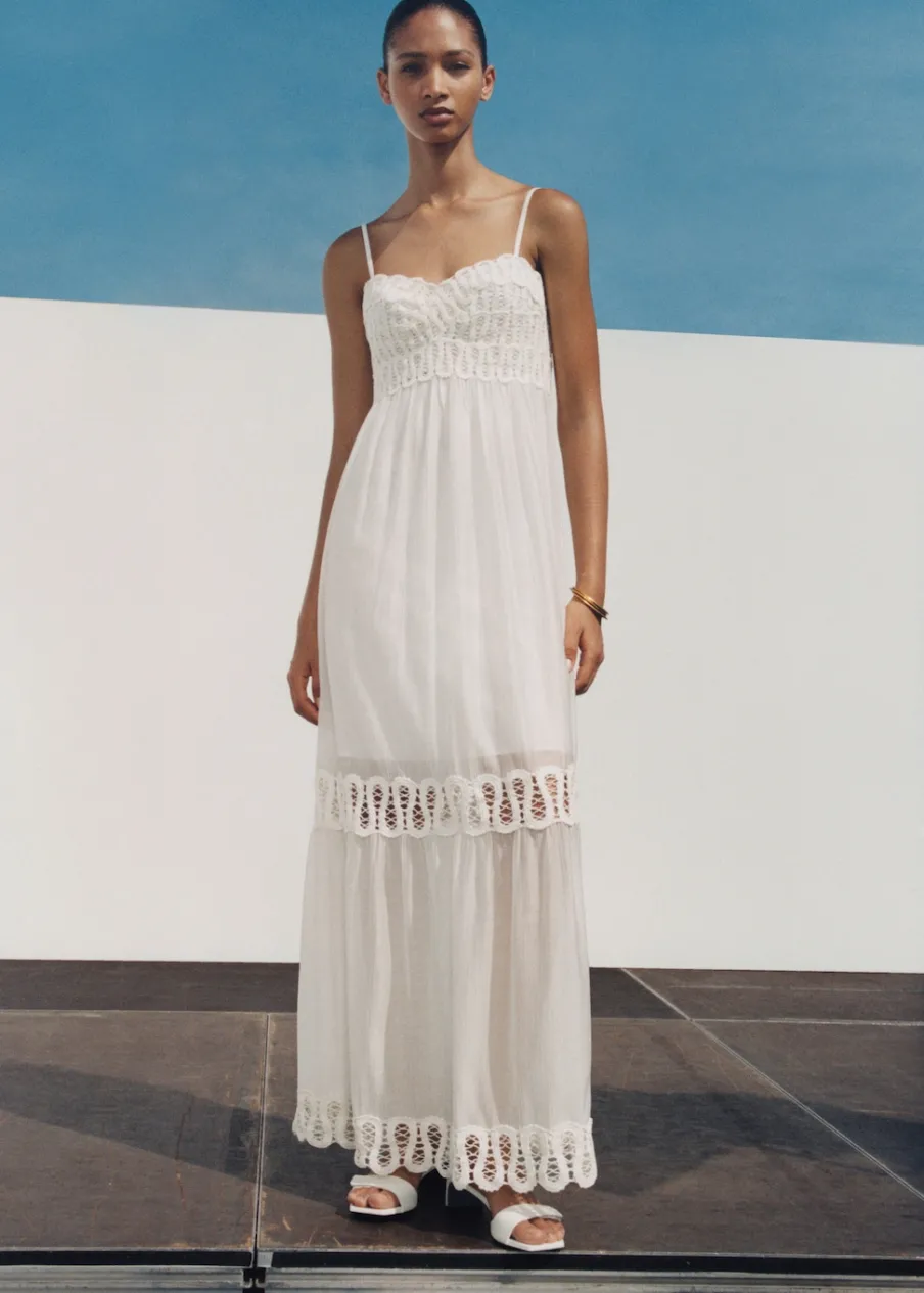 Tkanina mieszana z lyocellem. Model evasé. Model w dużym rozmiarze. Model długi. Dekolt V. Bez rękawów. Cienkie ramiączka. Zapięcie z tyłu na suwak. Haftowane detale. Wewnętrzna podszewka.
