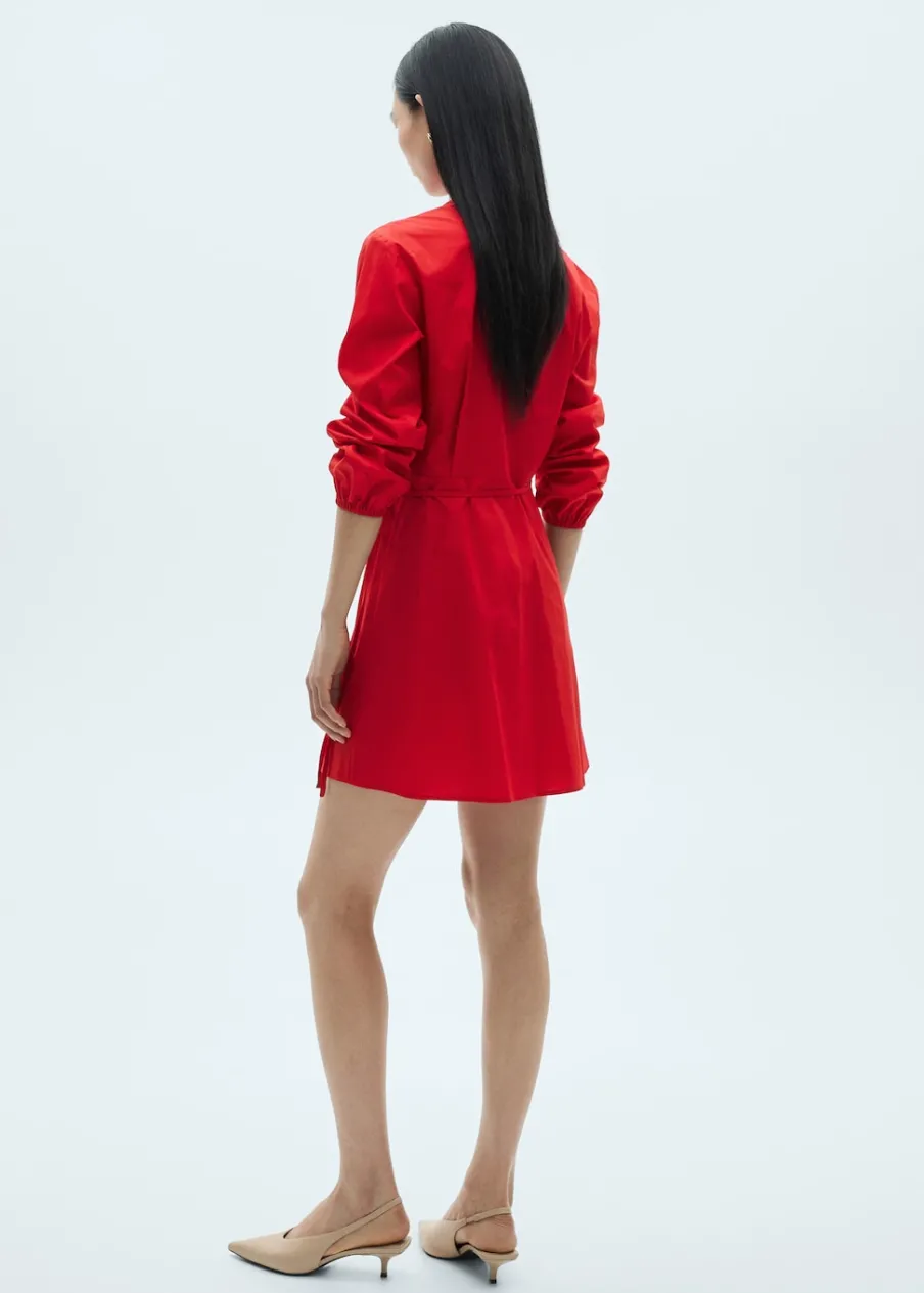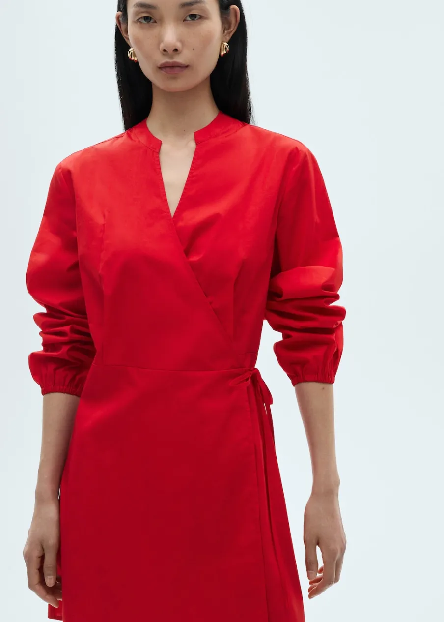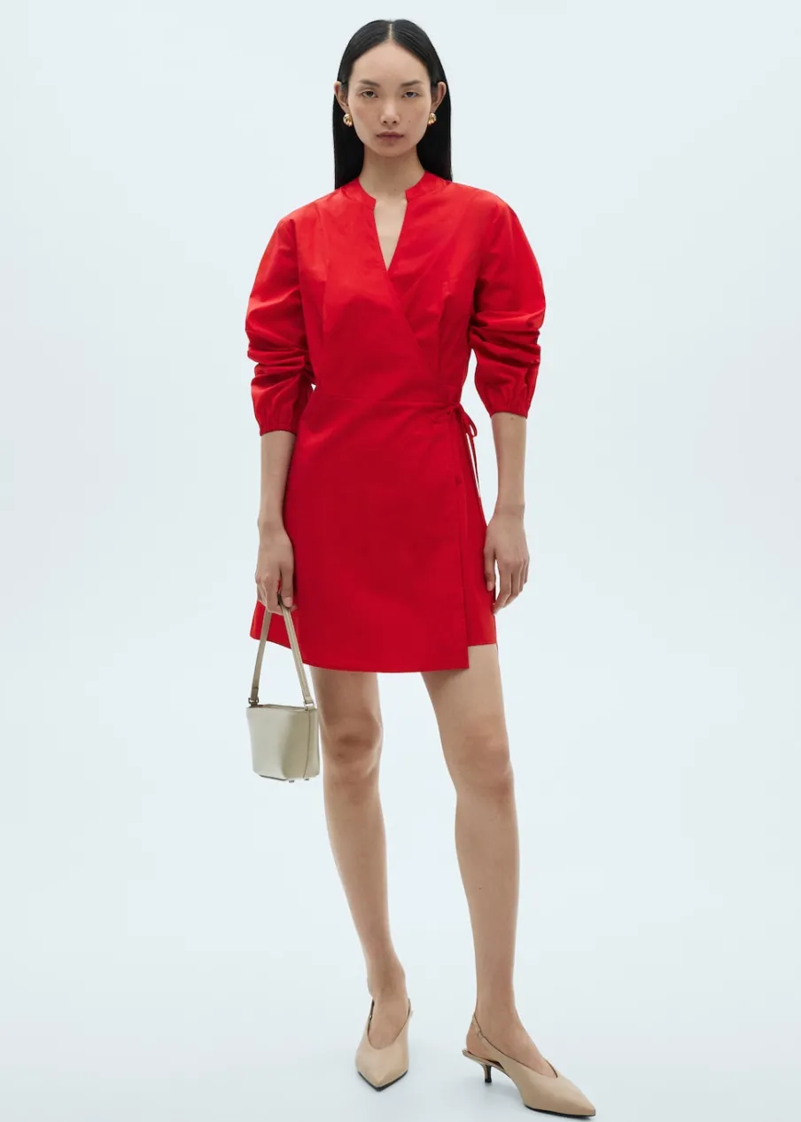 Tkanina z 100% bawełny. Model zakładany. Krótki krój. Bufiasty rękaw ze ściągaczem. Dekolt z listwą. Dekolt V. Bufiasty rękaw 3/4. Zapięcie na węzełek. Model prosty.