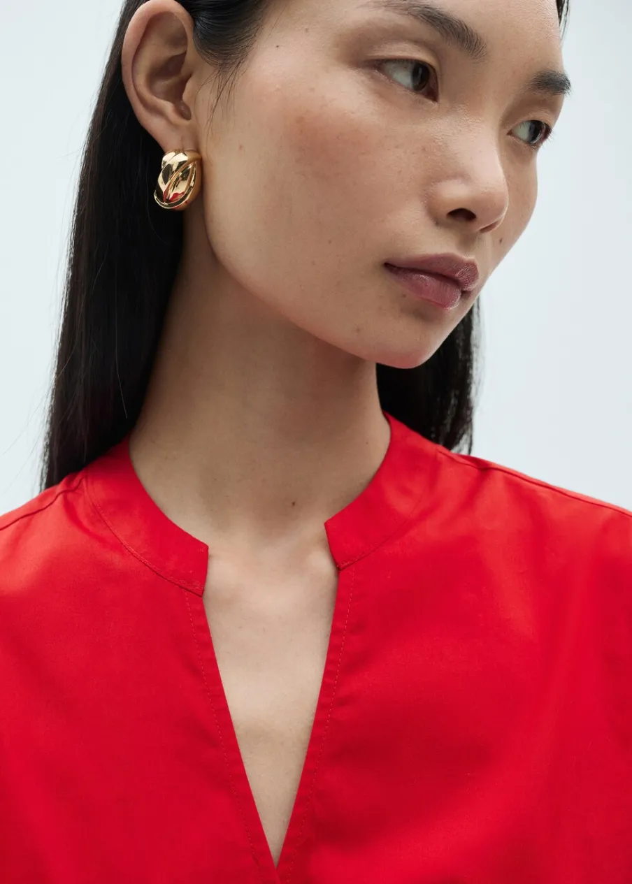 OpisTkanina z 100% bawełny. Model zakładany. Krótki krój. Bufiasty rękaw ze ściągaczem. Dekolt z listwą. Dekolt …