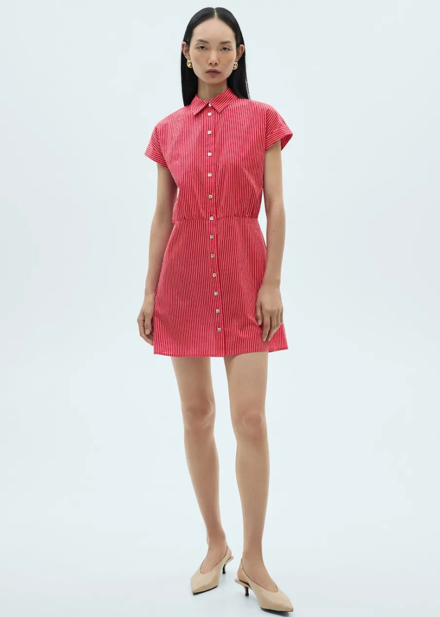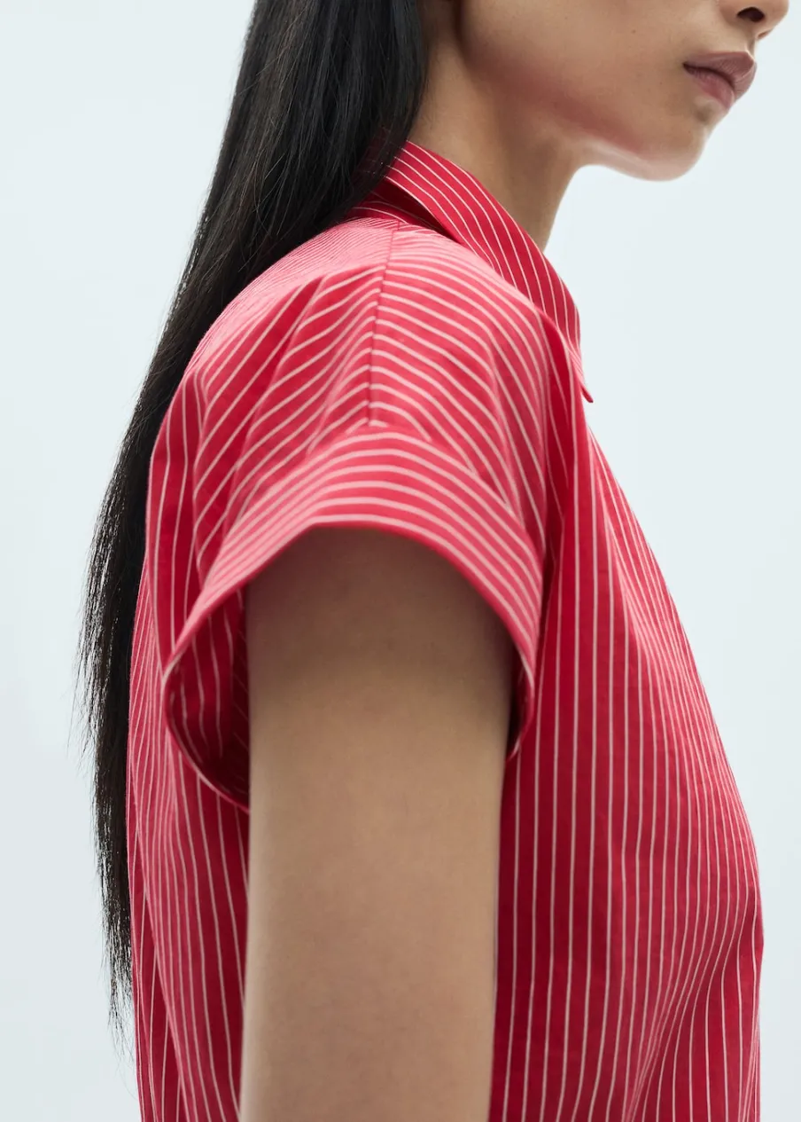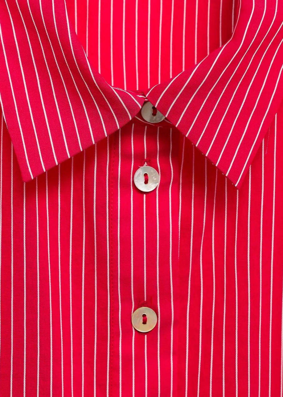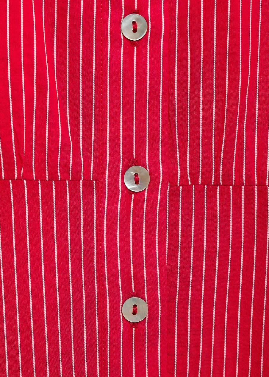 OpisTkanina mieszanka bawełny. Krótki krój. Wzór w pasy. Styl koszulowy. Krótki rękaw. Zapięcie z przodu na guzik…
