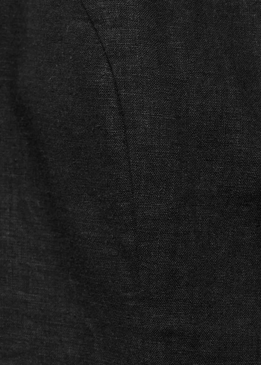 OpisTkanina z mieszanki lnu. Krótki krój. Model prosty. Dekolt V. Bez rękawów. Szerokie ramiączka. Zapięcie z tył…