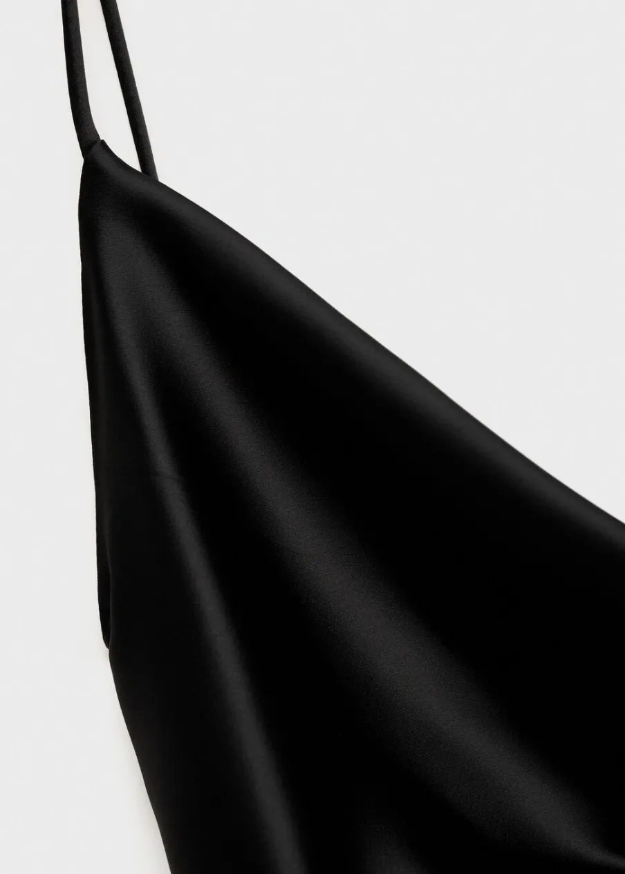 Cienka tkanina. Kolekcja wizytowa. Krótki krój. Slim-fit. Cienkie ramiączka. Dekolt V.