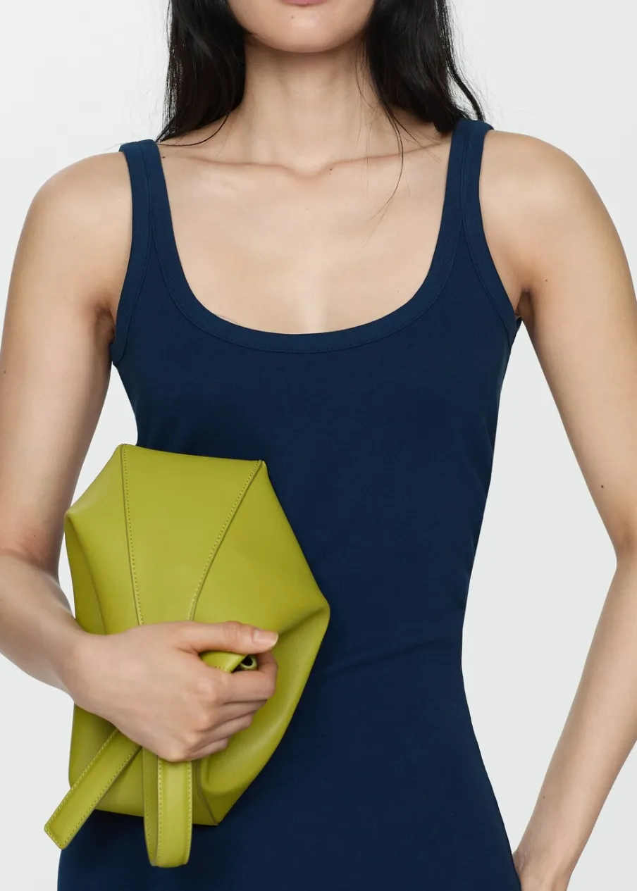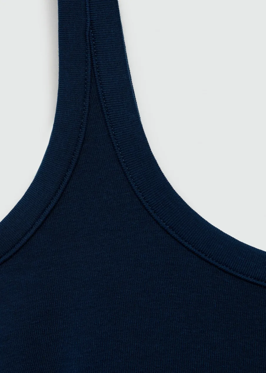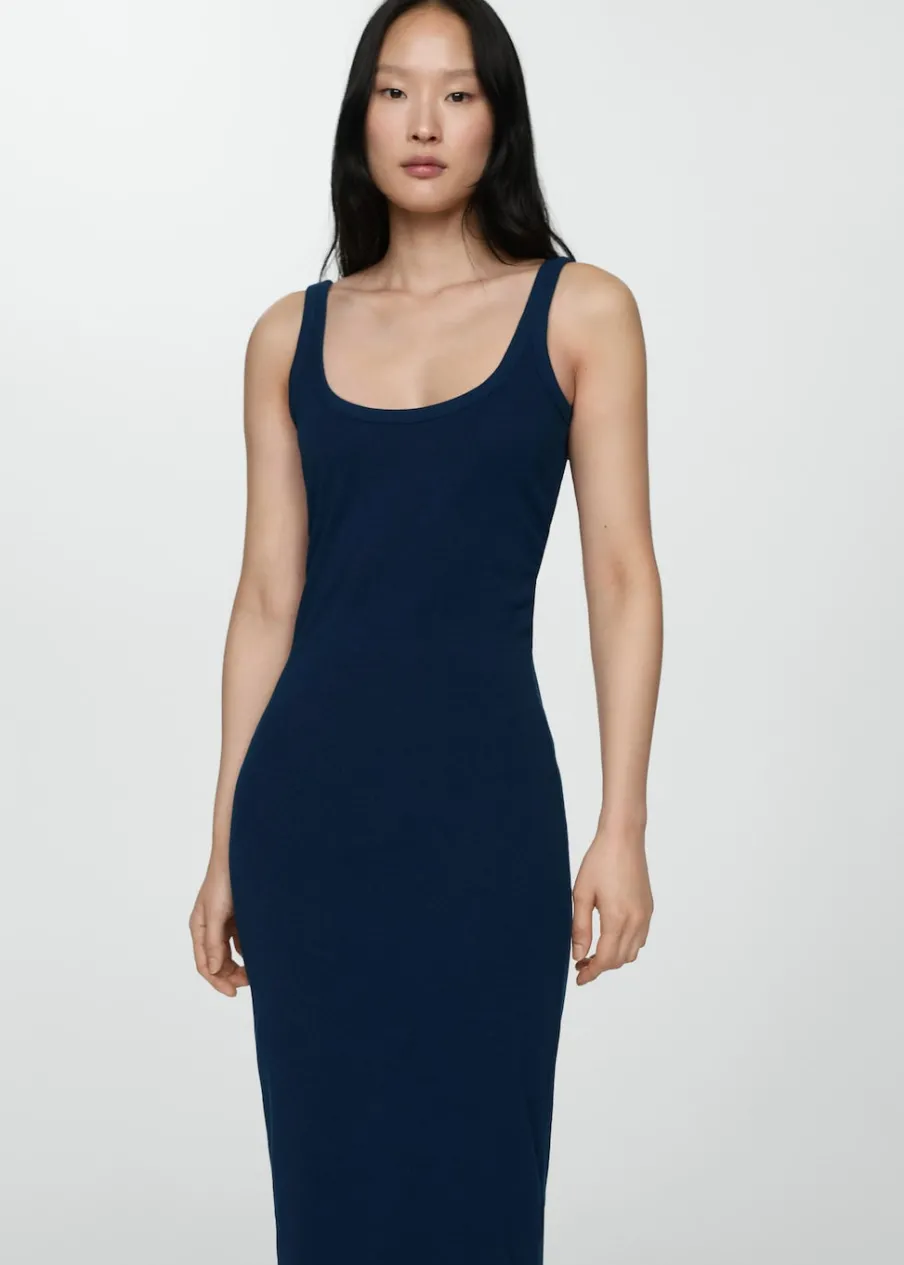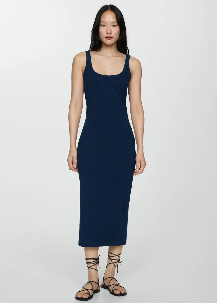 Tkanina mieszanka bawełny. Krój do kolan. Model prosty. Okrągły dekolt. Bez rękawów. Cienkie ramiączka. Wyłącznie online. Model wcięty.