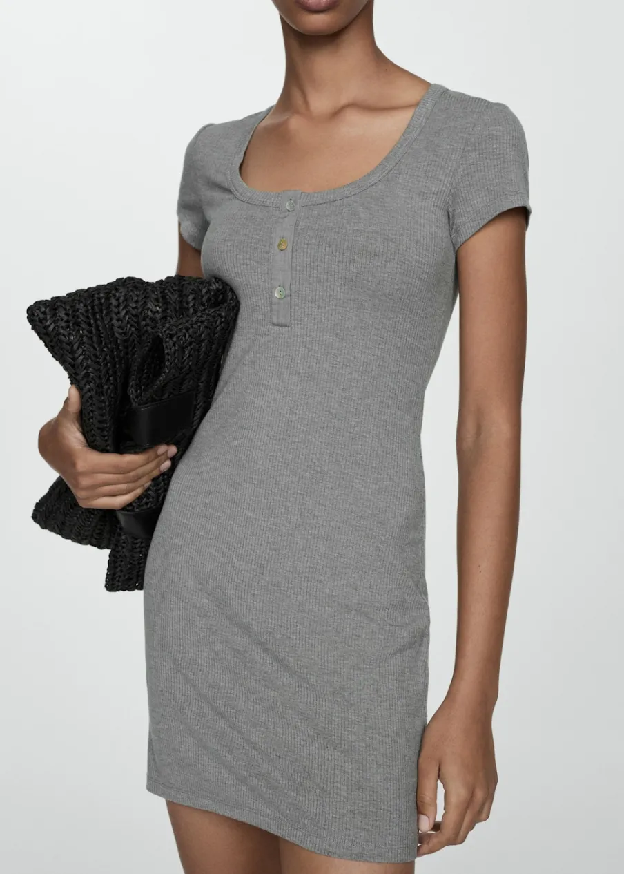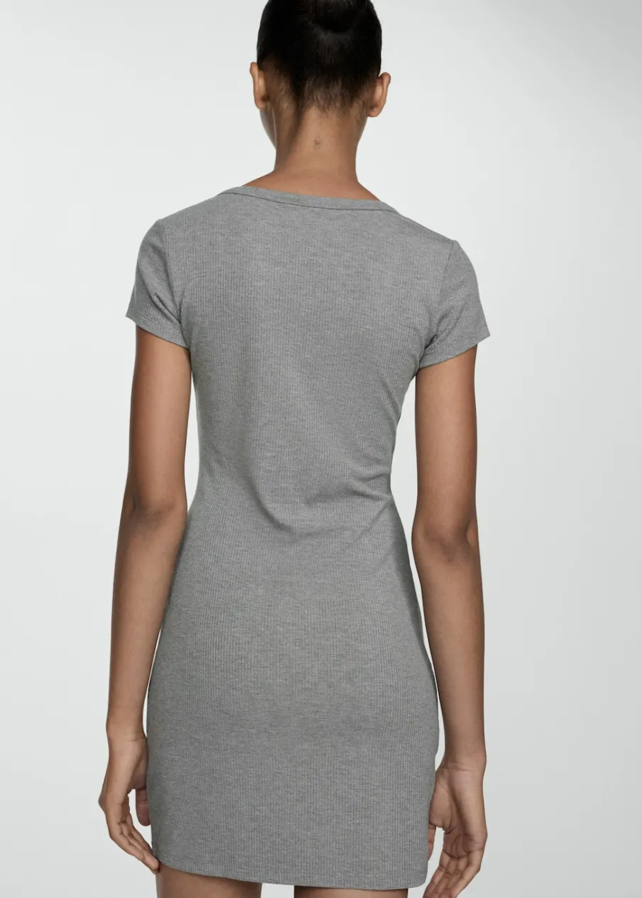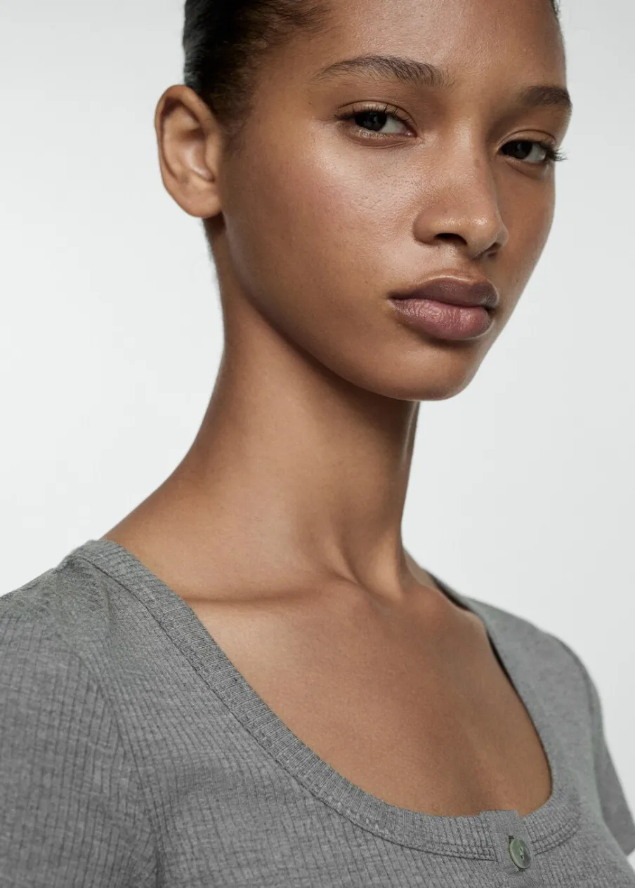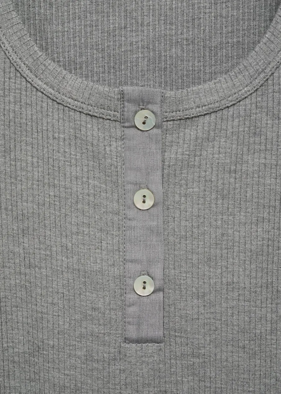 Tkanina ze ściągaczowej dzianiny. Krótki krój. Okrągły dekolt. Zapinany kołnierzyk. Krótki rękaw. Model wcięty.