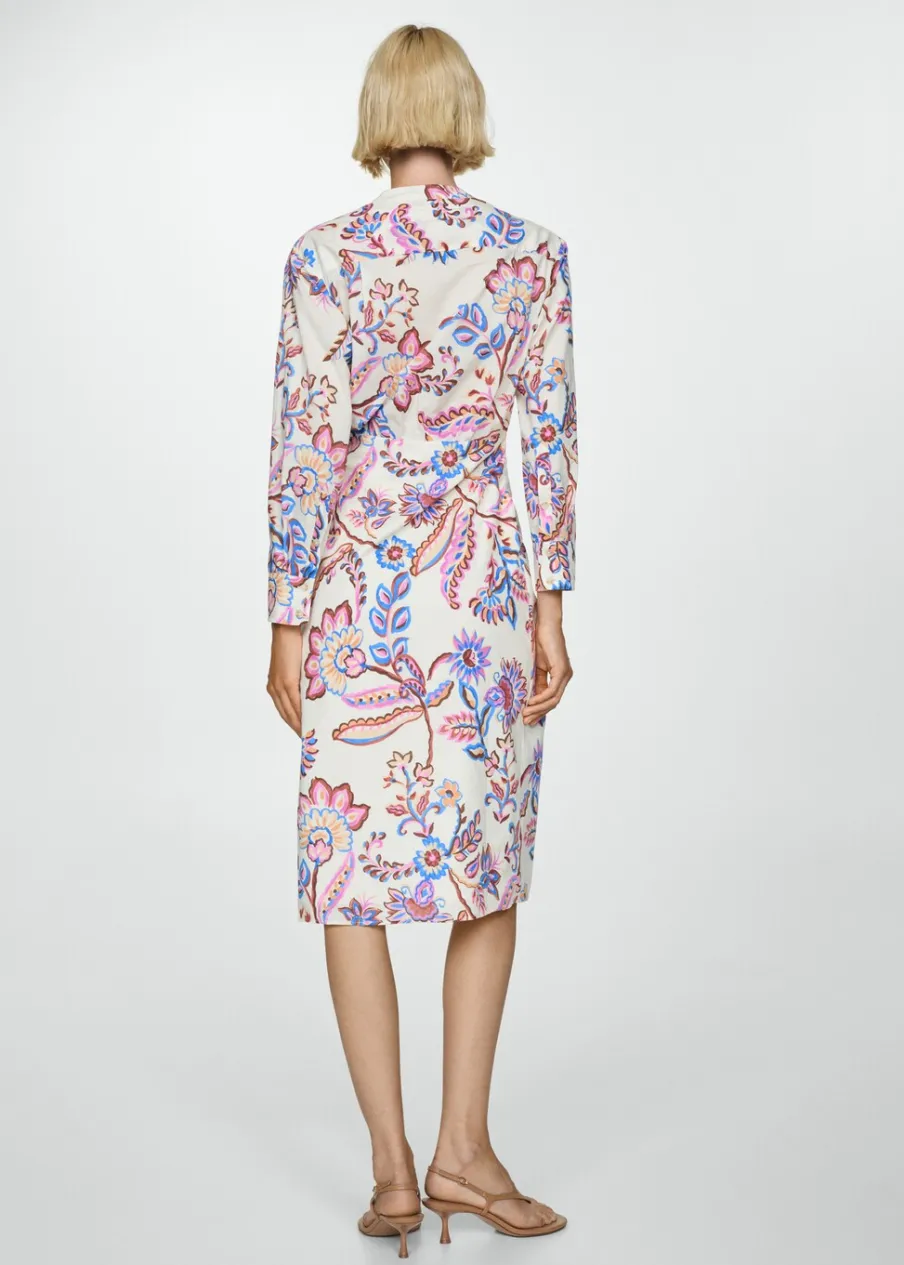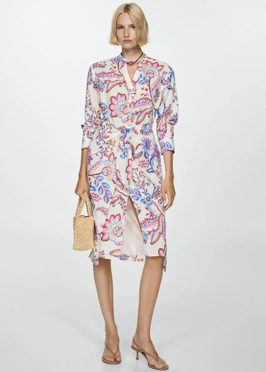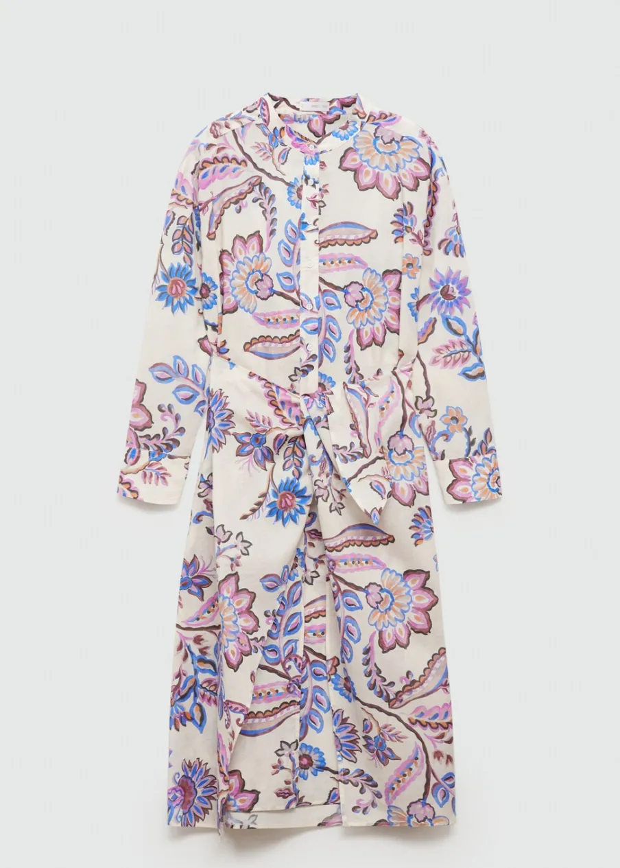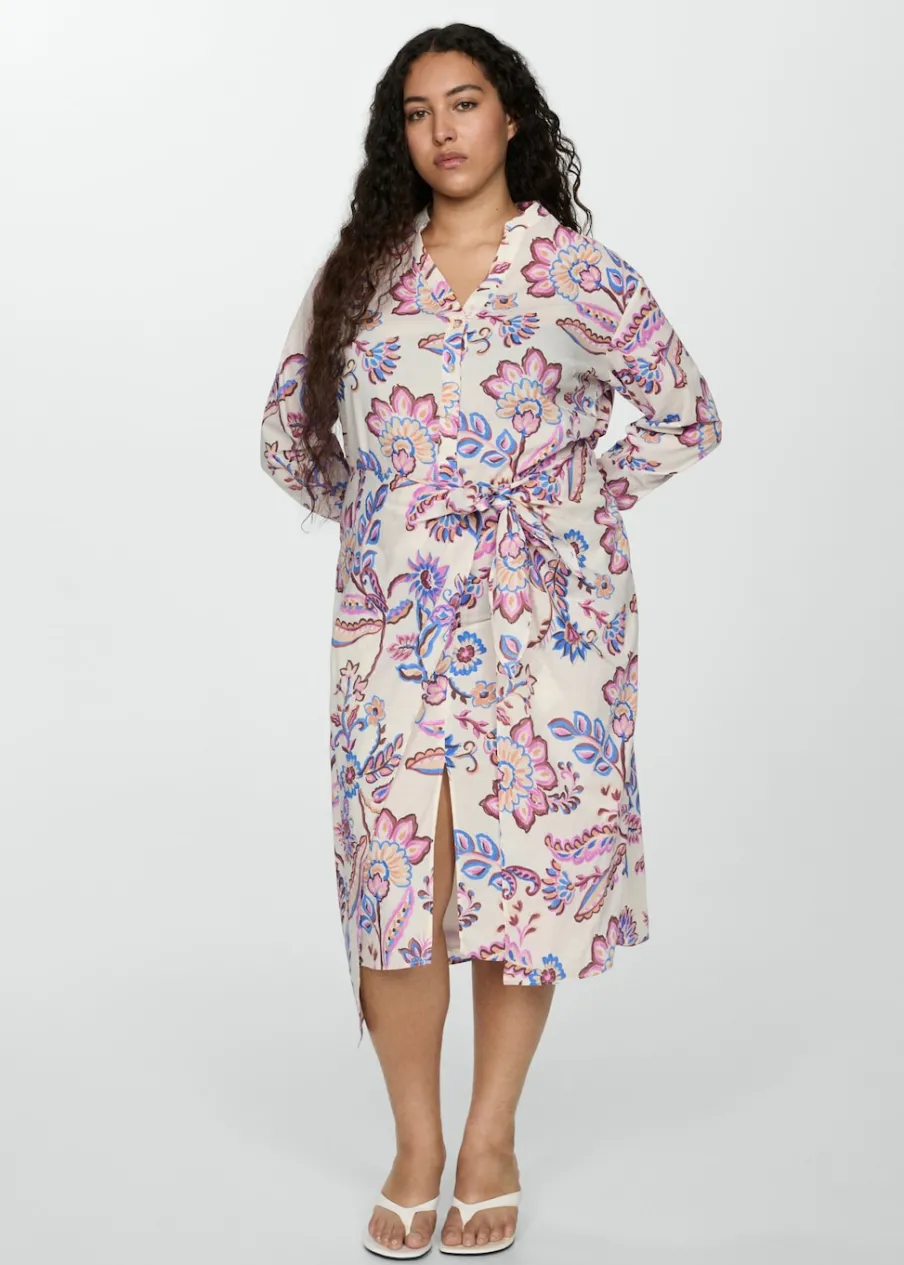 Model prosty. Krój do kolan. Kwiatowy wzór. Dekolt V. Długi rękaw z guzikami na mankietach. Zapięcie na zamek z przodu. Ozdobna kokardka. Rozporek z przodu. Dostępne w Plus Size. Nadruk. Tkanina z 100% bawełny.