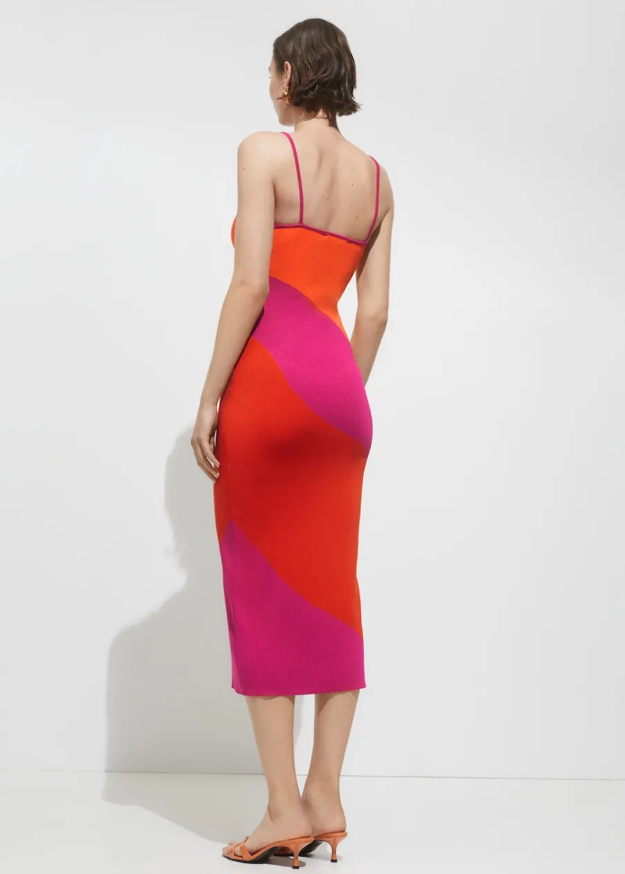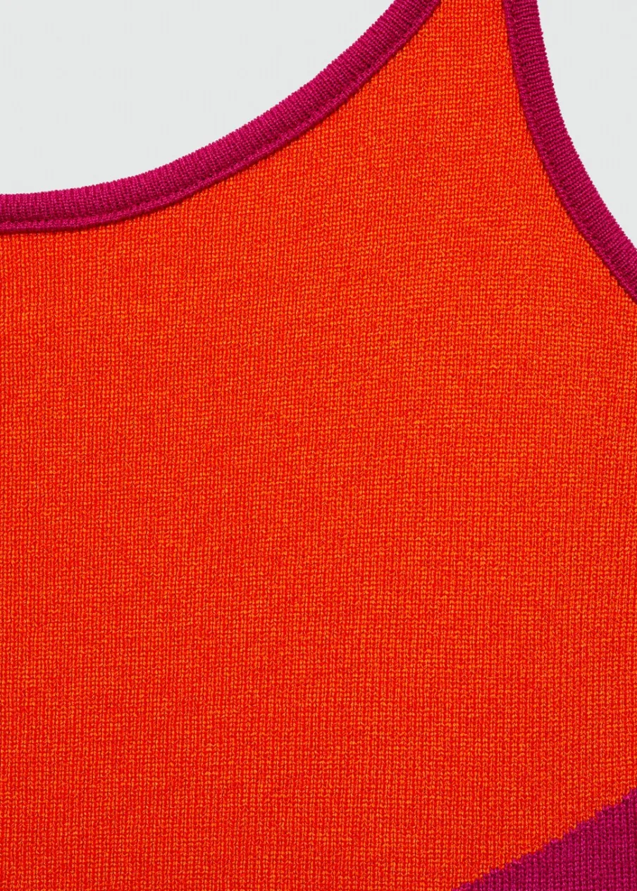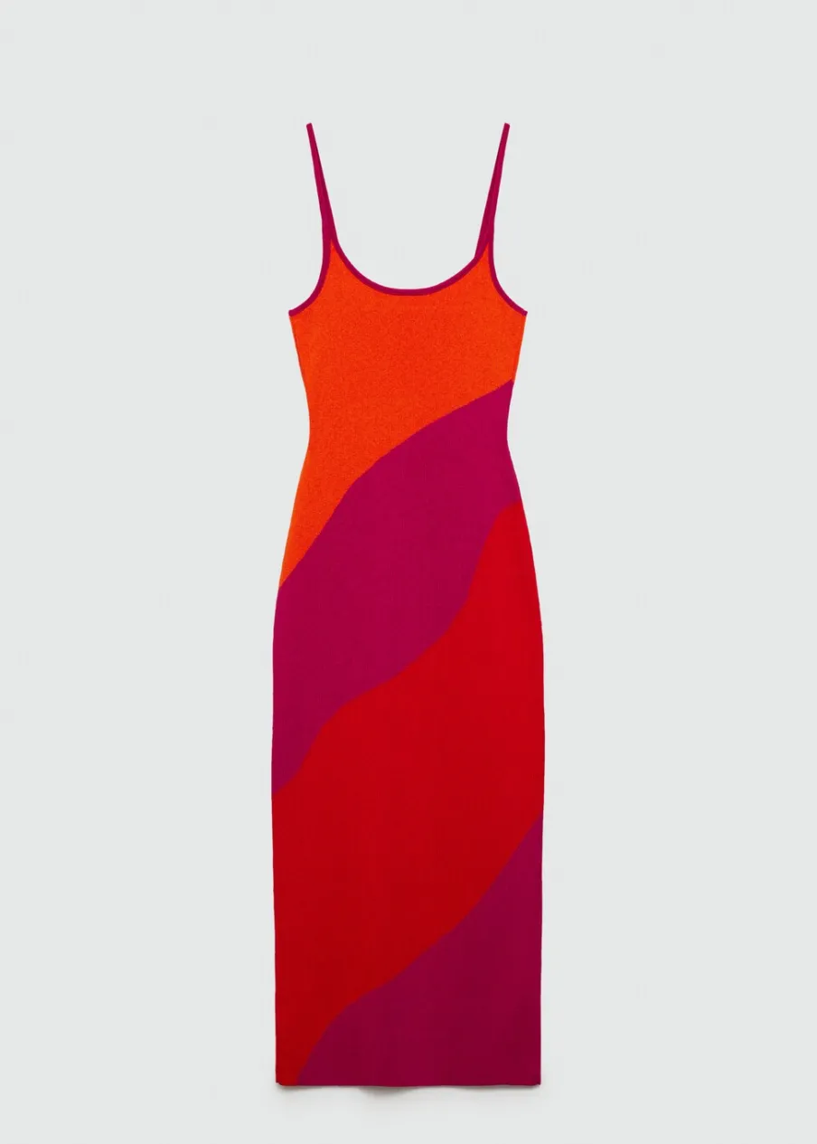 Tkanina z grubej dzianiny. Model długi. Okrągły dekolt. Bez rękawów. Cienkie ramiączka. Bez zapięcia. Model wcięty. Nadruk.