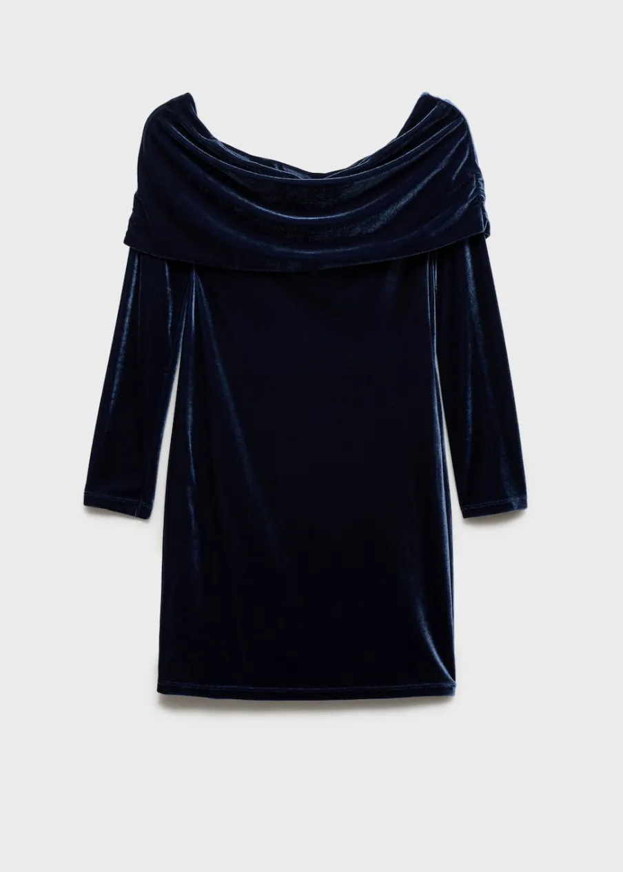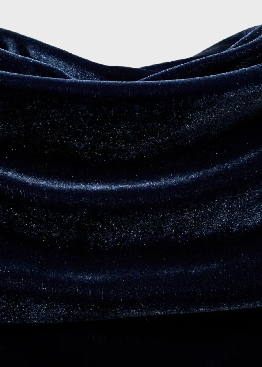 OpisAksamitna tkanina. Model wcięty. Krótki krój. Fason z odkrytymi ramionami. Odkryte ramiona. Długi rękaw. Bez za…