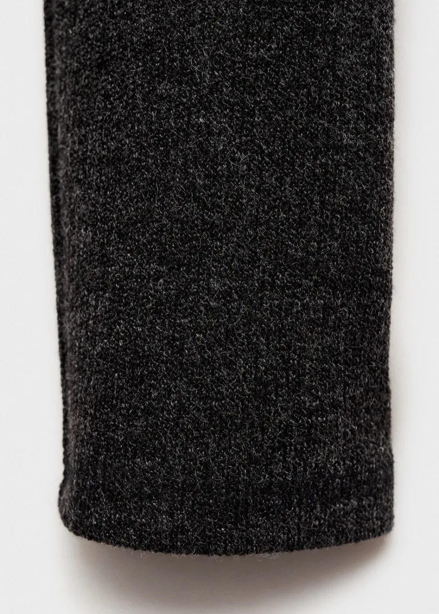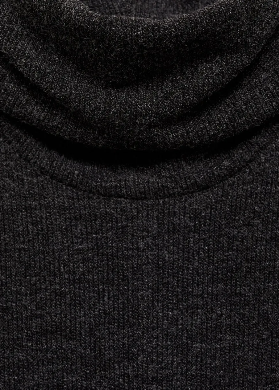 Dzianinowa tkanina. Cienka tkanina. Model evasé. Golf. Krój do kolan. Wywinięty kołnierz. Długi rękaw. Bez zapięcia.