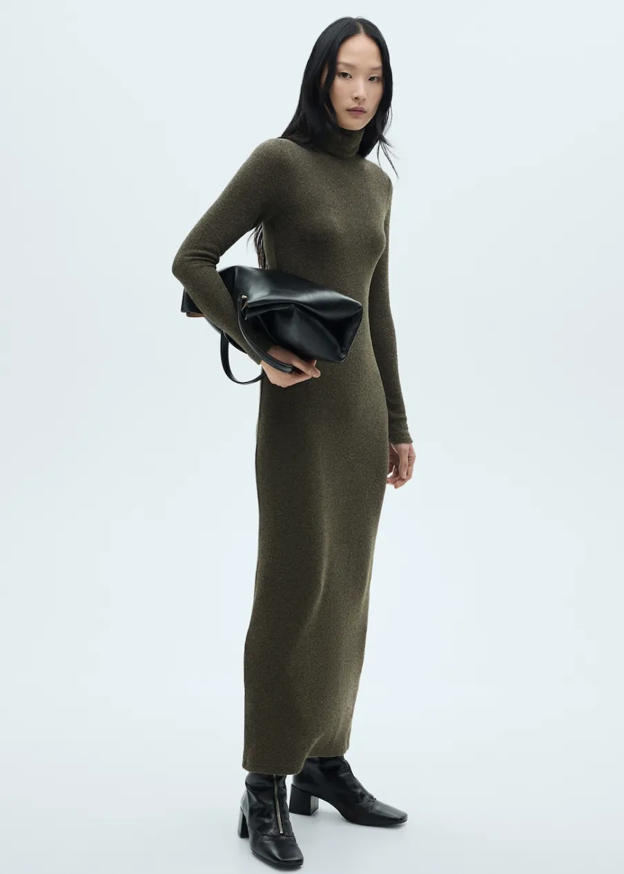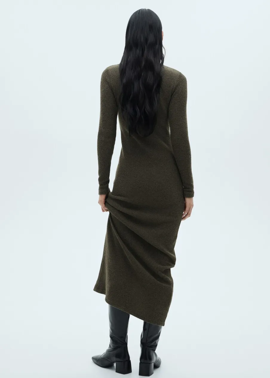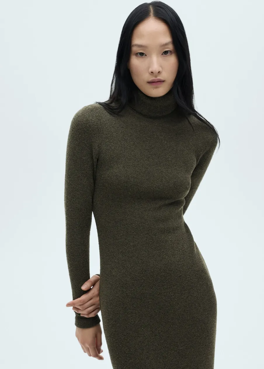 Dzianina. Cienka tkanina. Slim-fit. Model długi. Wywinięty kołnierz. Długi rękaw. Bez zapięcia. Bez podszewki. Modelka ma 175 cm wzrostu i nosi rozmiar S/36.