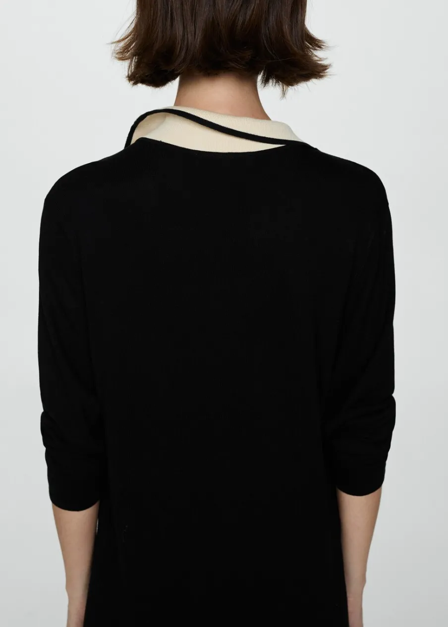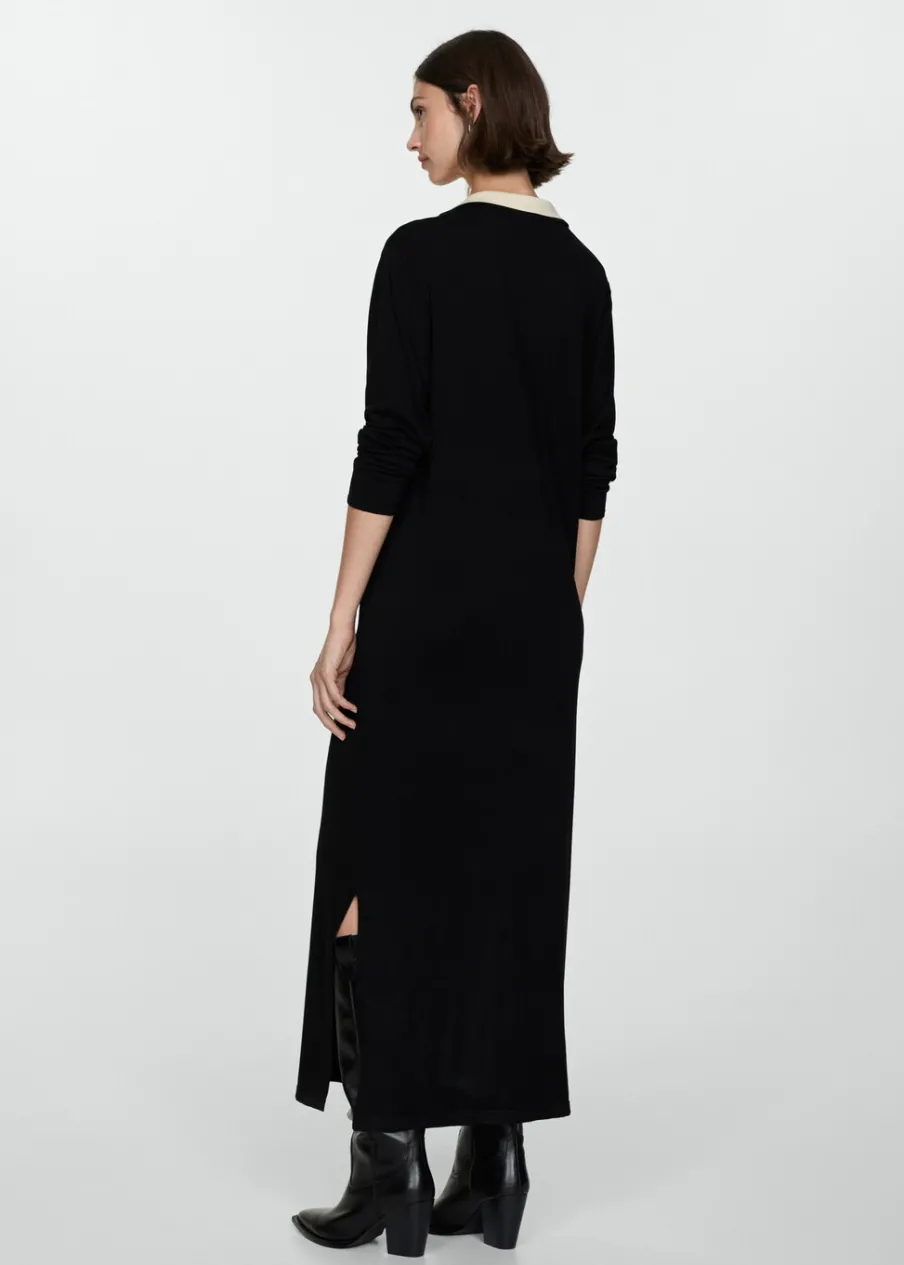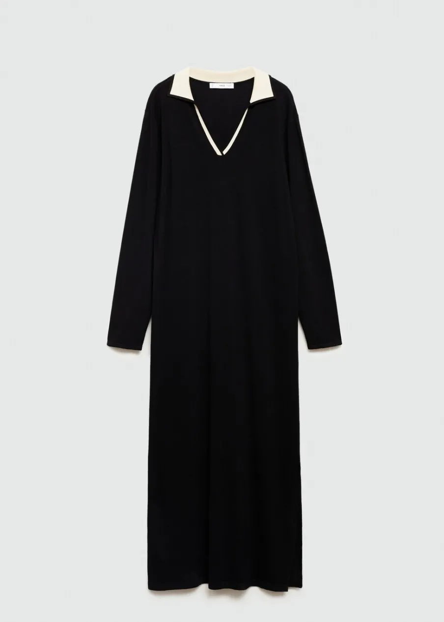 Tkanina z cienkiej dzianiny. Model długi. Model oversize. Koszulowy kołnierz. Długi rękaw. Kontrastowy kołnierz. Rozcięcie u dołu z boku. Bez podszewki.