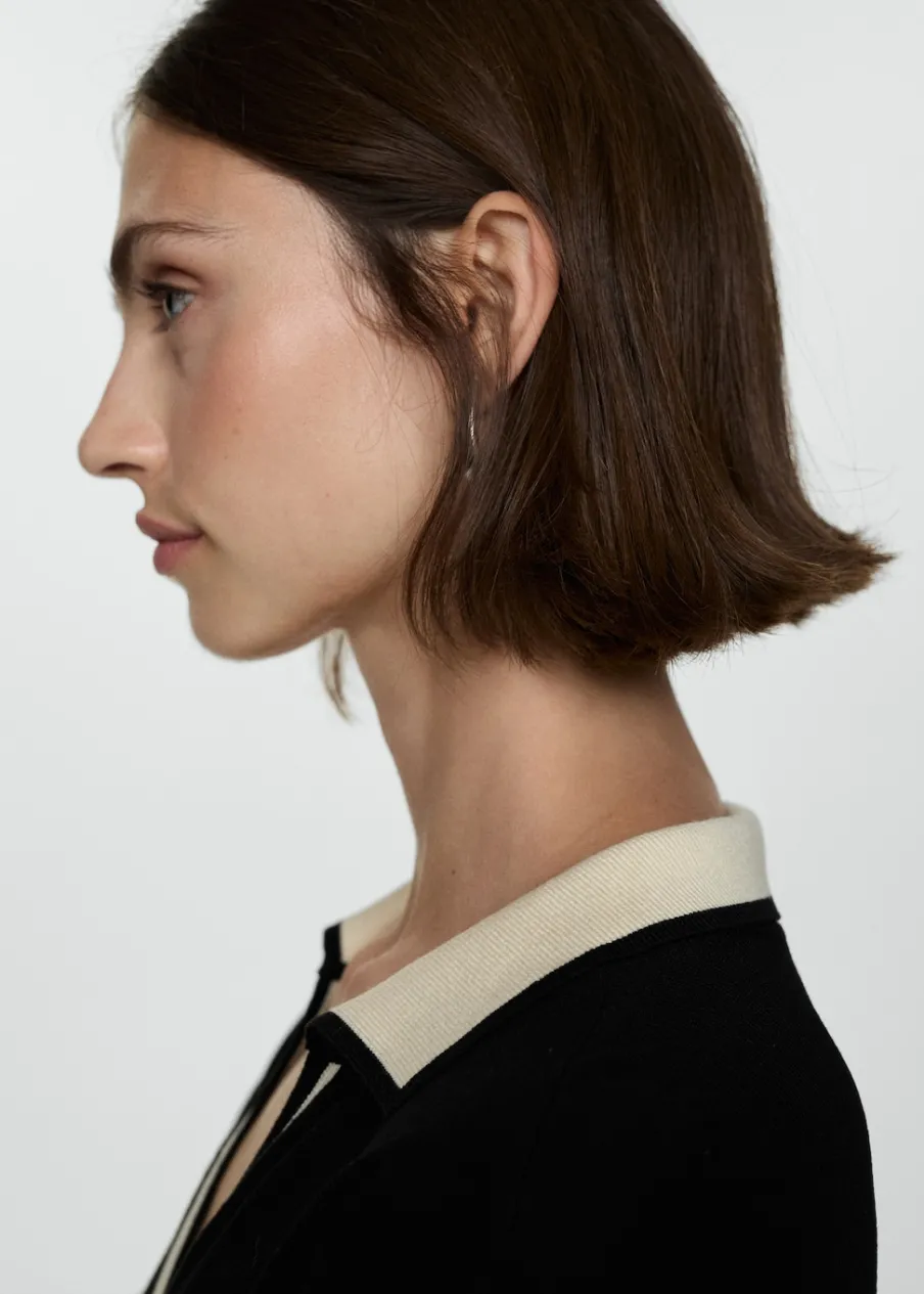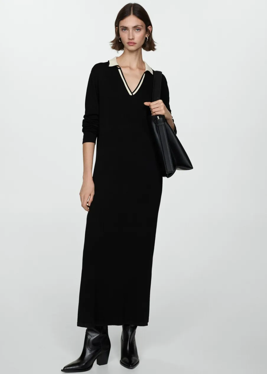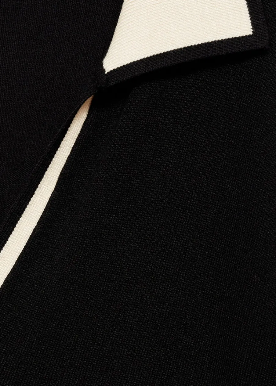 Tkanina z cienkiej dzianiny. Model długi. Model oversize. Koszulowy kołnierz. Długi rękaw. Kontrastowy kołnierz. Rozcięcie u dołu z boku. Bez podszewki.