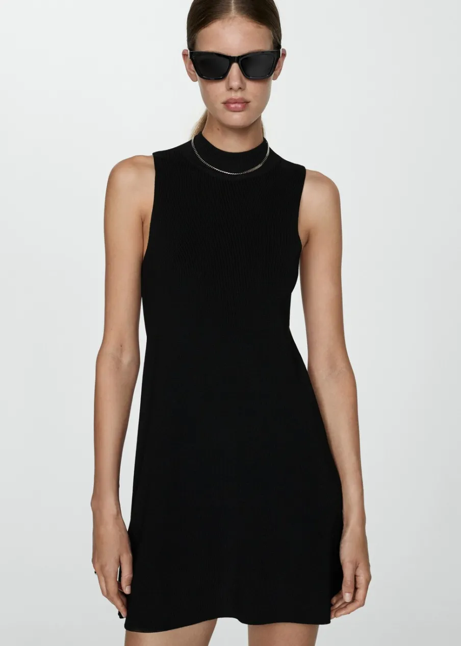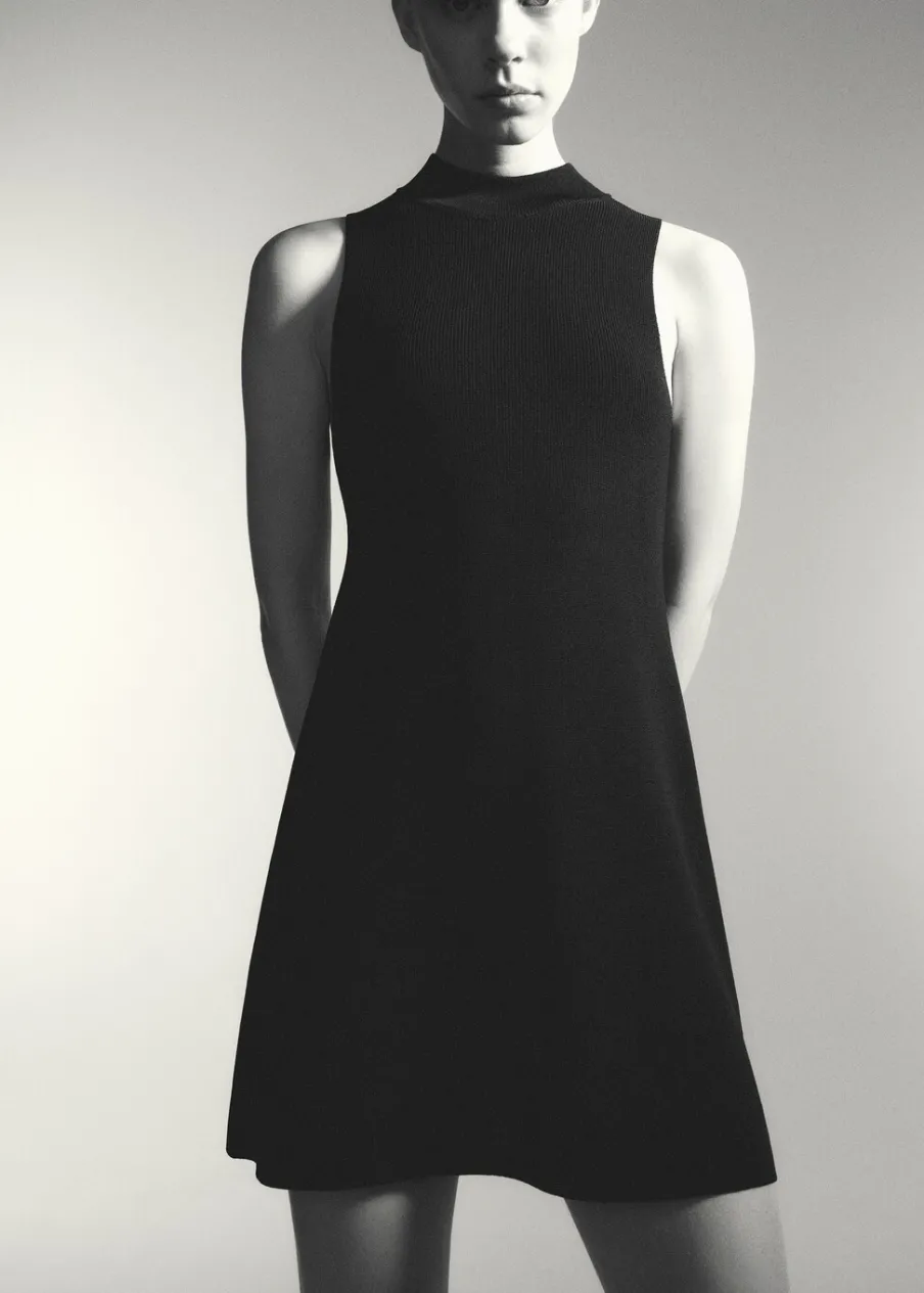 Tkanina z cienkiej dzianiny. Krótki krój. Model evasé. Półgolf. Bez rękawów. Dostępne w Plus Size. Modelka ma 180 cm wzrostu i nosi rozmiar S.