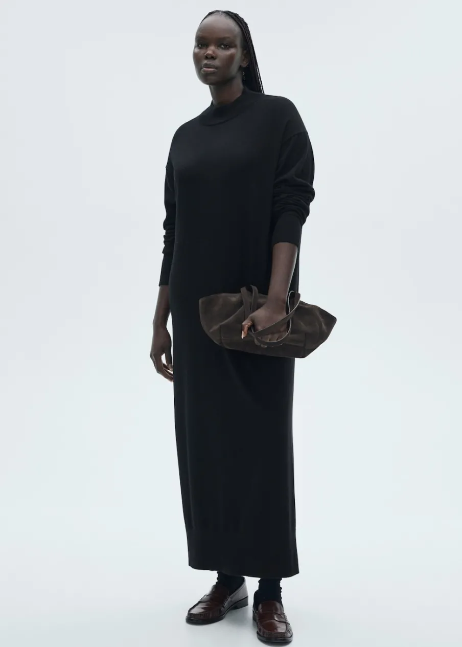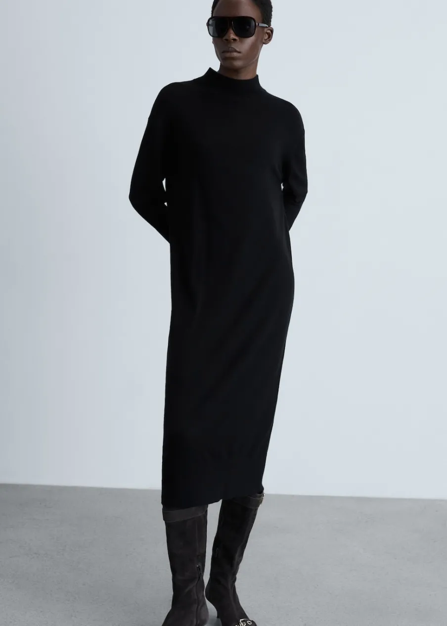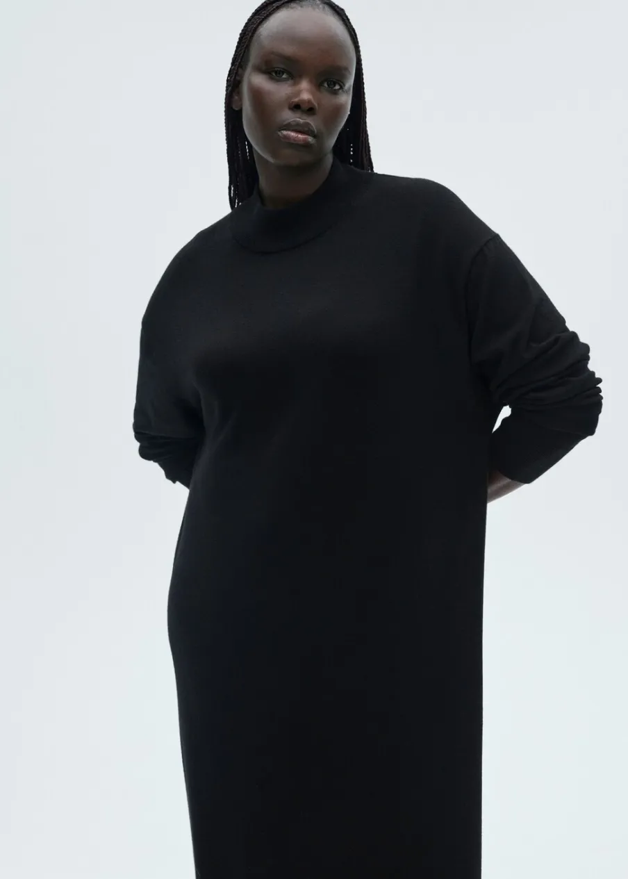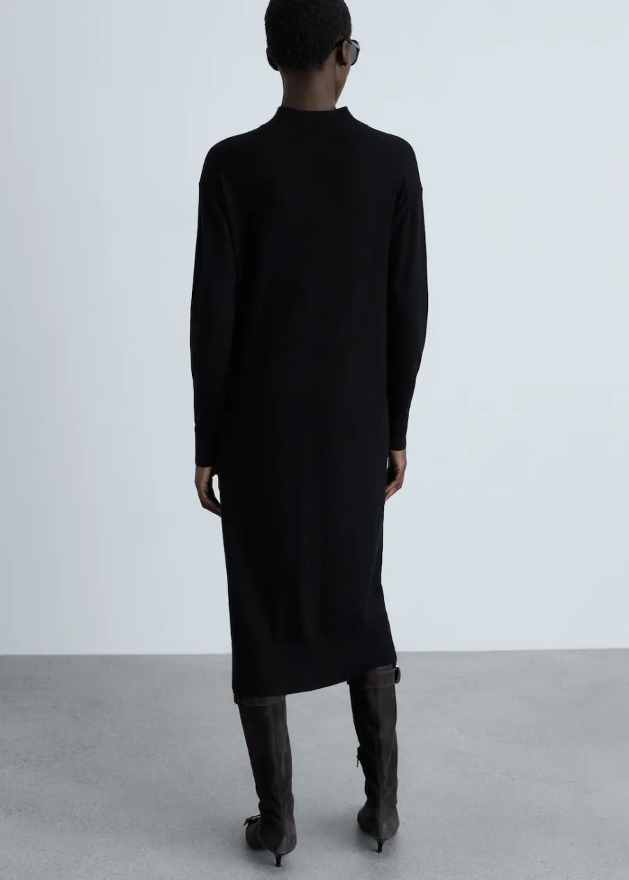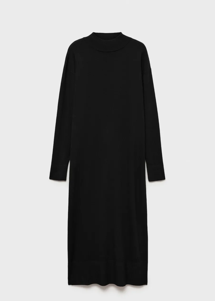 Golf. Bez zapięcia. Model długi. Model prosty. Długi rękaw. Tkanina z cienkiej dzianiny. Bez podszewki. Krój do kolan. Półgolf. Ściągaczowe wykończenia.