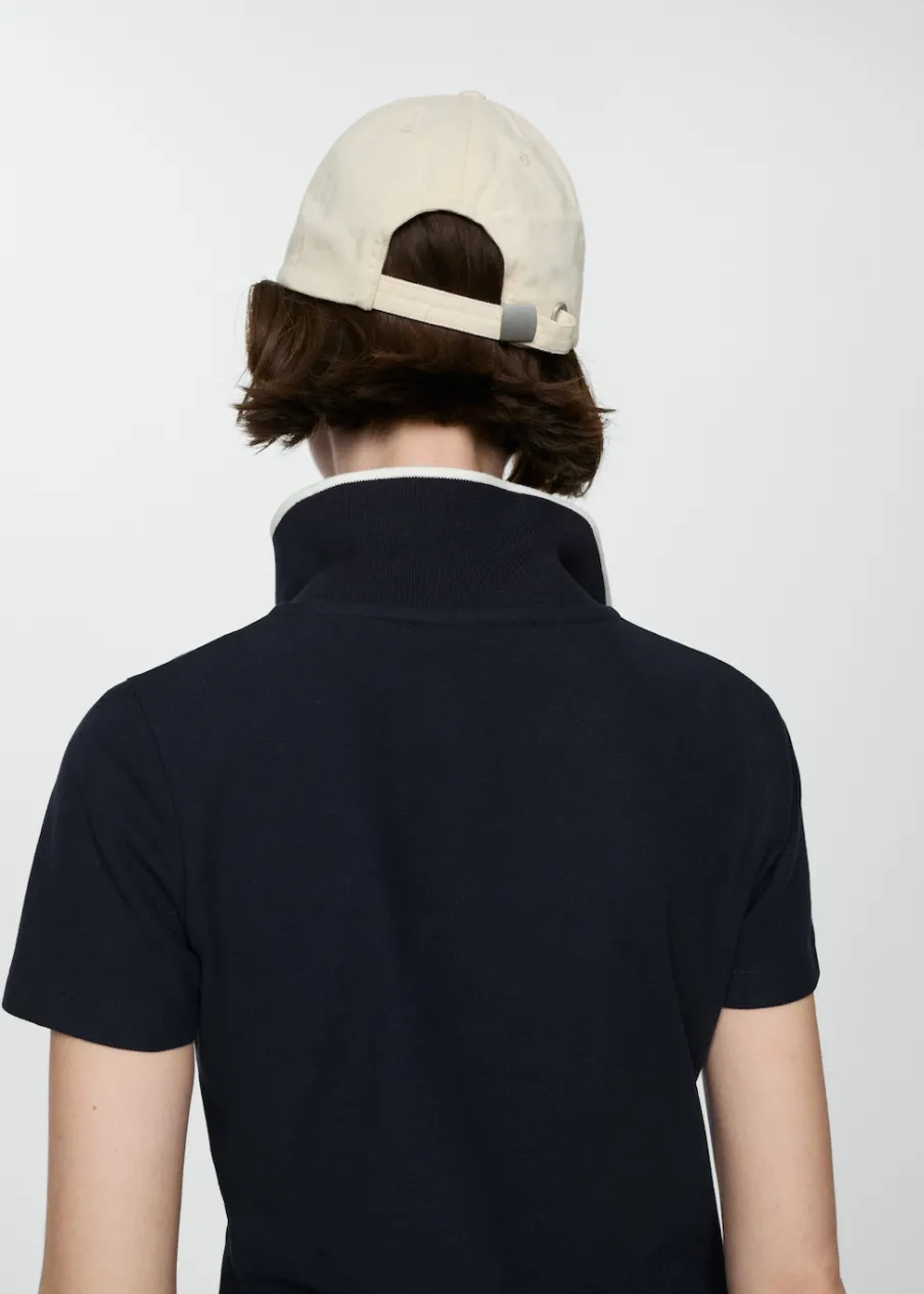 Krótki krój. Model prosty. Kołnierzyk polo. Krótki rękaw. Bez zapięcia. Kontrastowe wykończenia. Tkanina z 100% bawełny.