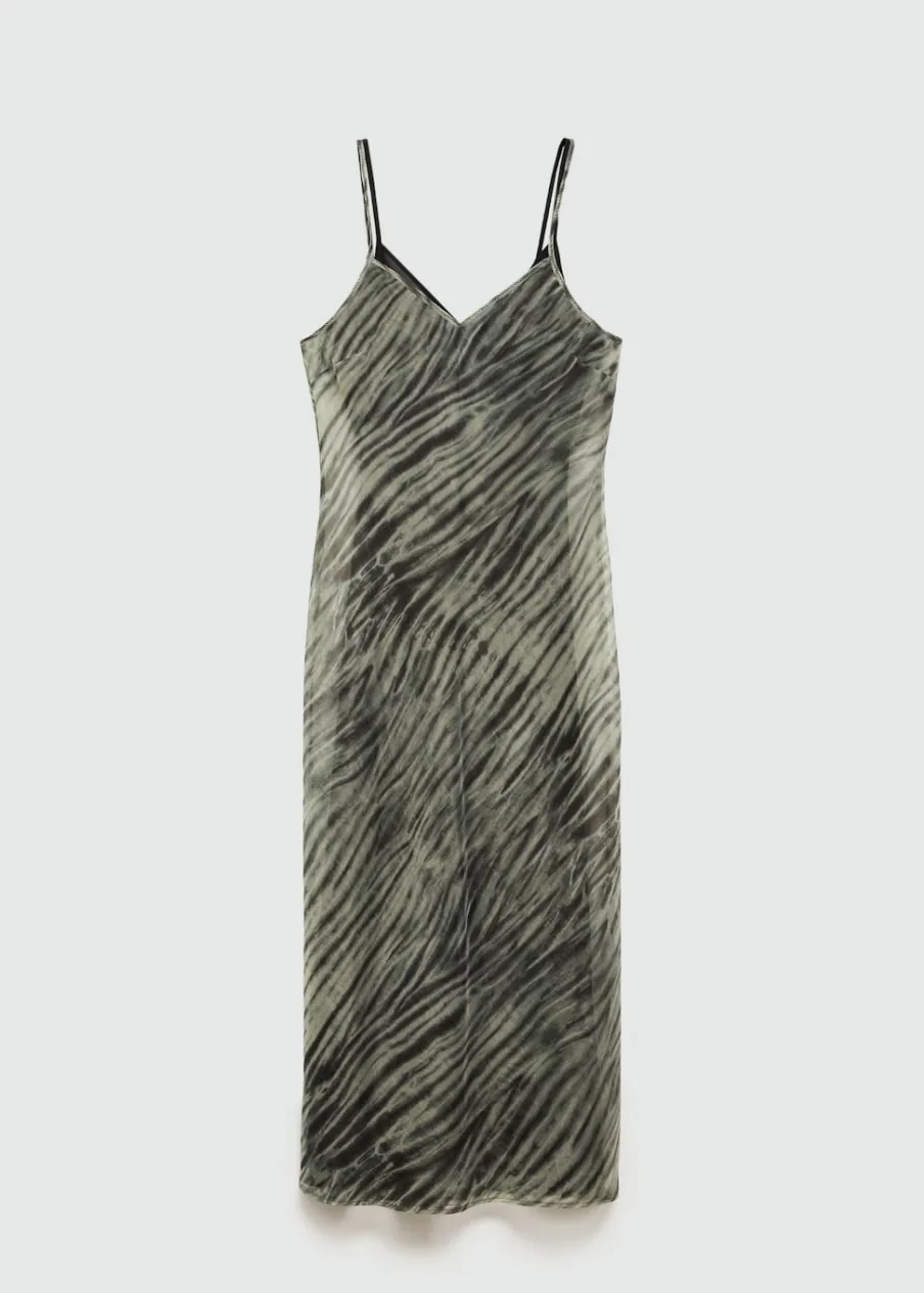 Lejąca tkanina. Model prosty. Model długi. Dekolt V. Cienkie podwójne ramiączka. Wewnętrzna podszewka. Modelka ma 175 cm wzrostu i nosi rozmiar S/36. Modelka ma 179 cm wzrostu i nosi rozmiar S/36. Kolekcja wizytowa. Nadruk.