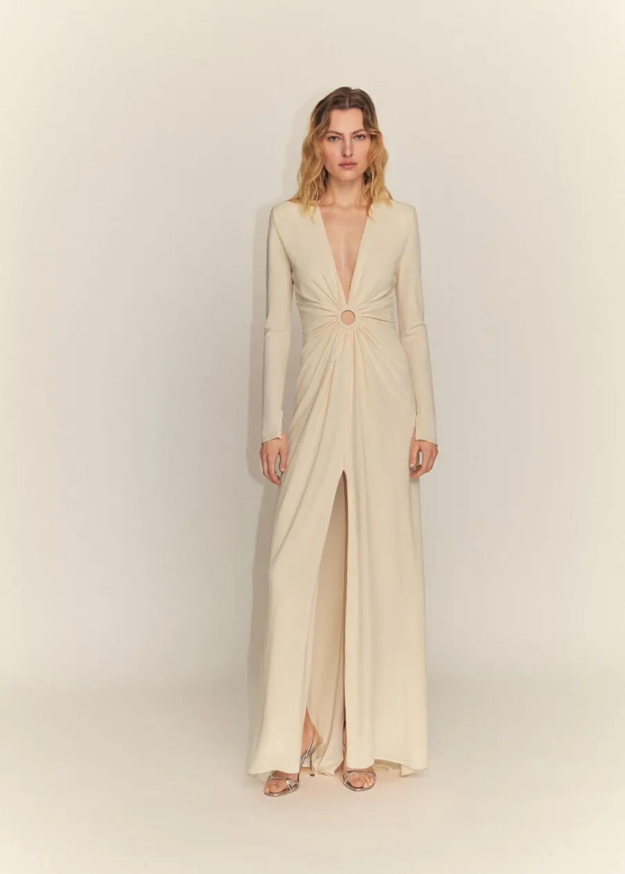 Elegancka, wyrafinowana i twarzowa – ta sukienka będzie trafionym wyborem na każdą imprezę w tym sezonie. Ma poduszki w ramionach i okrągłe wycięcie z marszczeniem. Lejąca tkanina. Model prosty. Model długi. Dekolt V. Długi rękaw. Zapięcie z tyłu na kryty suwak. Ozdobne kółko. Marszczona tekstura. Rozcięcie z przodu u dołu. Wyprodukowano w Portugalii. Kolekcja wizytowa. Artykuły z kolekcji CAPSULE można wymienić lub zwrócić w ciągu 14 dni od daty wysyłki.