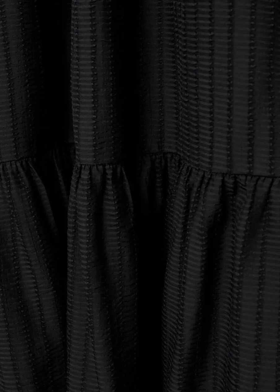 OpisTkanina mieszana z lyocellem. Teksturowana tkanina. Model evasé. Model w dużym rozmiarze. Model długi. Bez rękaw…
