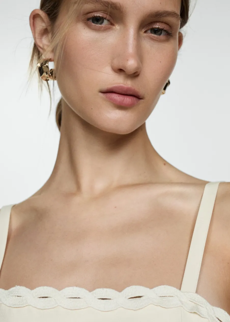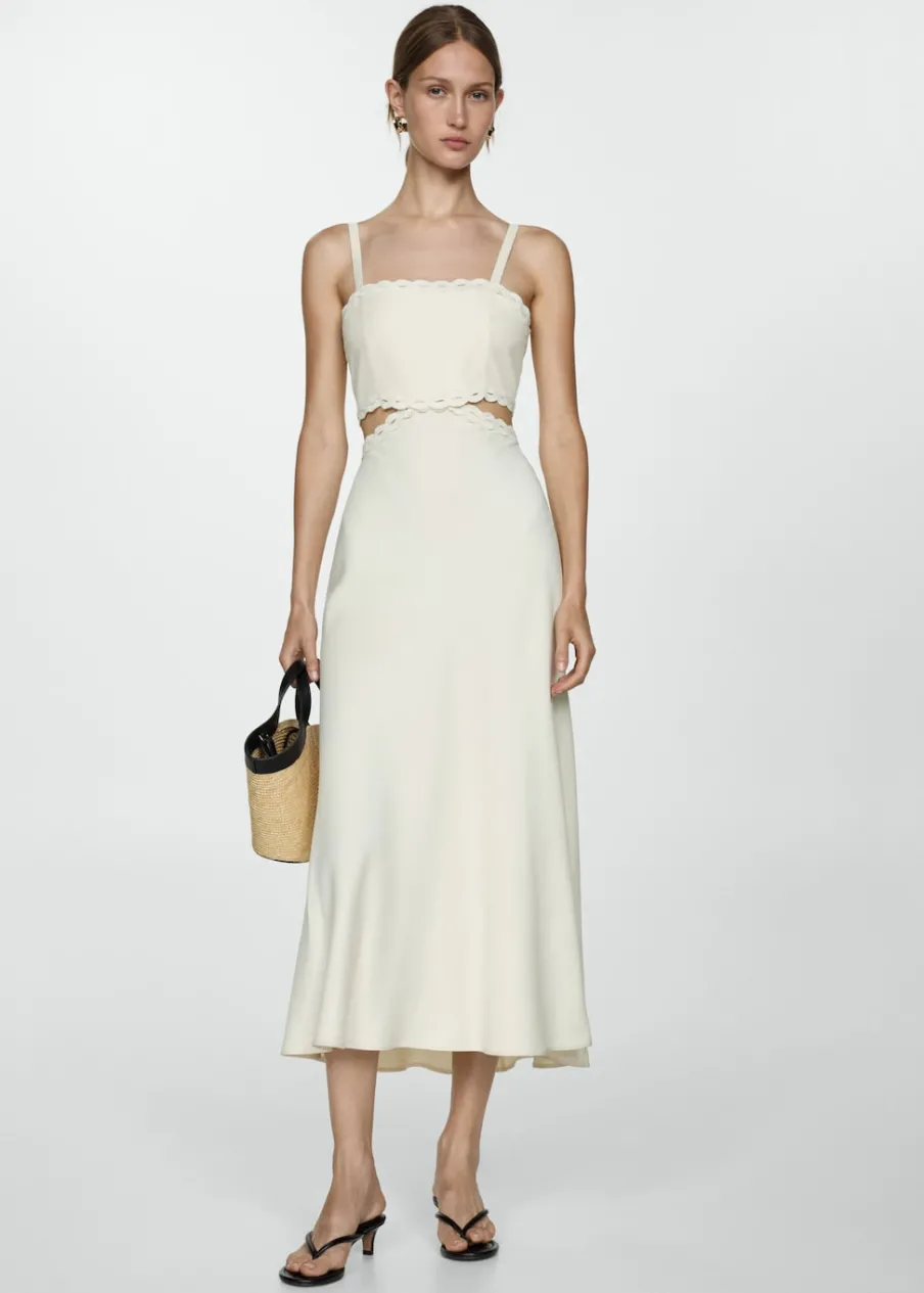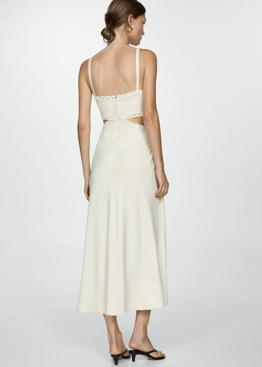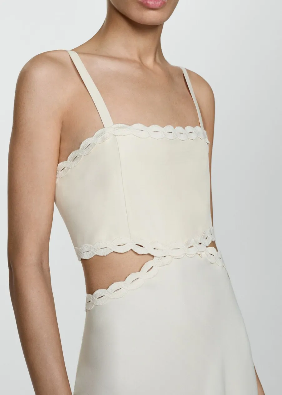 Lejąca tkanina. Model długi. Model prosty. Wycięcie. Kwadratowy dekolt. Bez rękawów. Cienkie ramiączka. Zapięcie z tyłu na suwak. Detal z rozcięciem. Wykończenia z koronki.