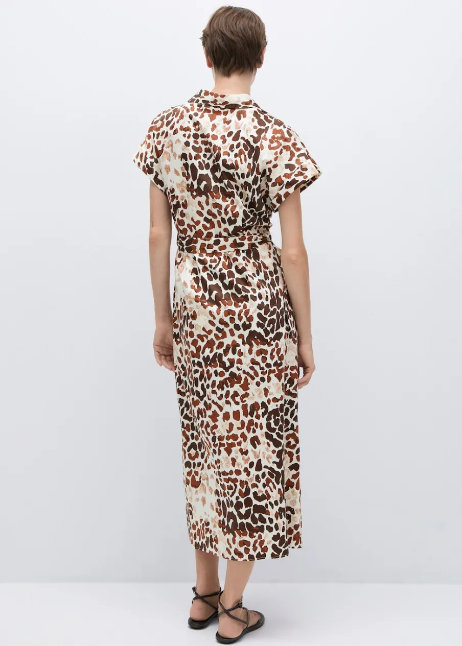 OpisKrój do kolan. Model prosty. Wzór w lamparcie cętki. Zwierzęcy wzór. Koszulowy kołnierz. Krótki rękaw. Szluf…