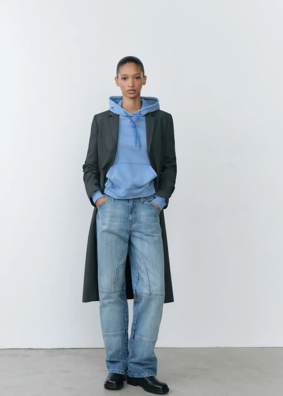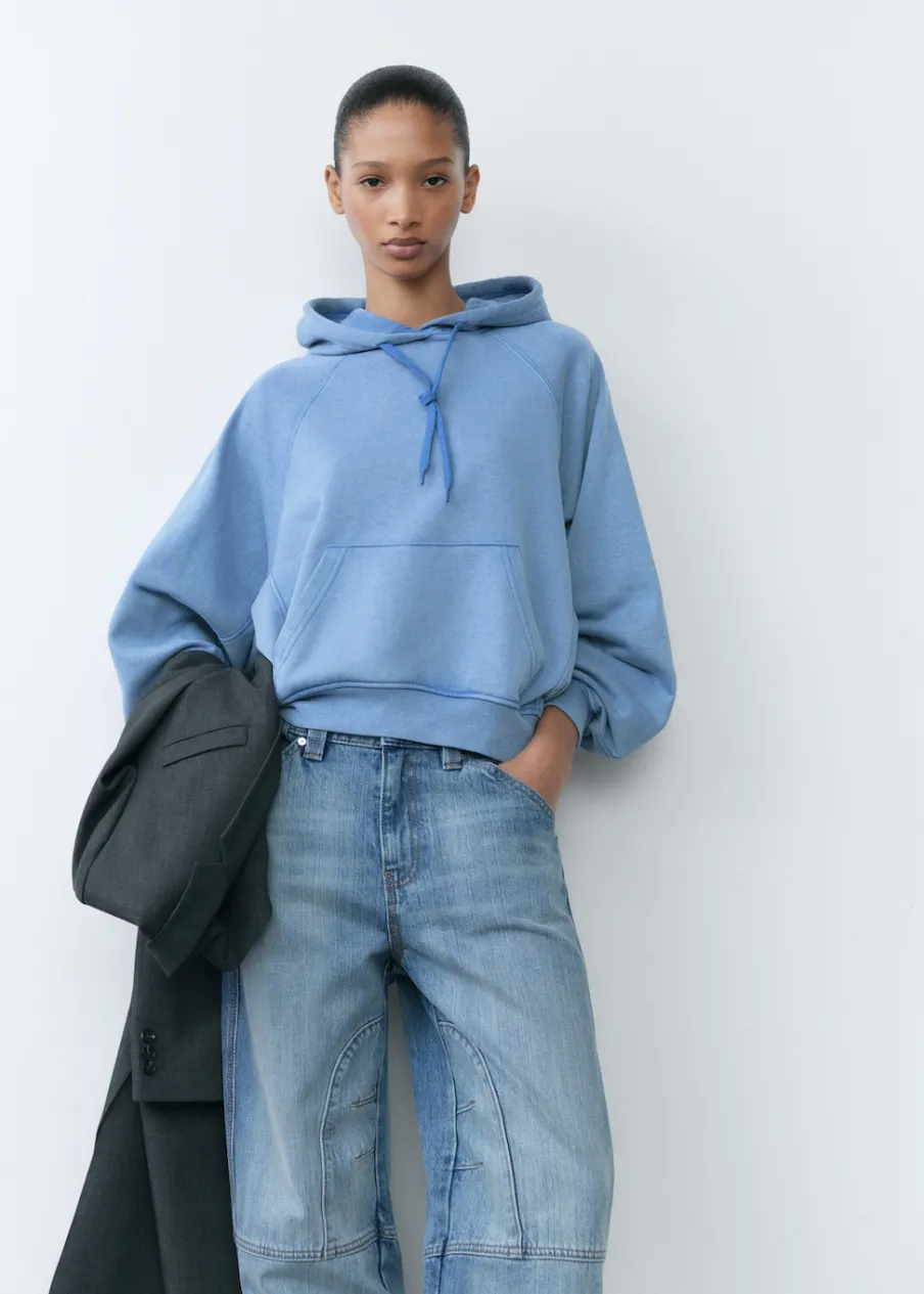 OpisModel prosty. Okrągły dekolt. Kaptur. Długi rękaw z elastycznymi mankietami. Duża kieszeń. Modelka ma 178 cm w…