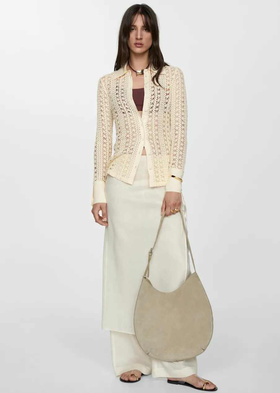 OpisTkanina mieszanka bawełny. Szydełkowy model. Model prosty. Koszulowy kołnierz. Długi rękaw z guzikami na mankie…