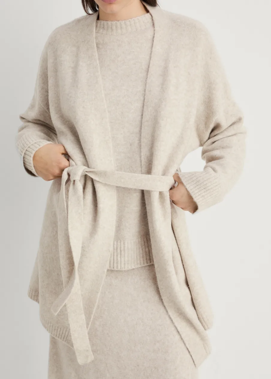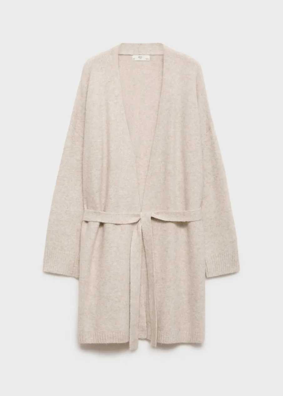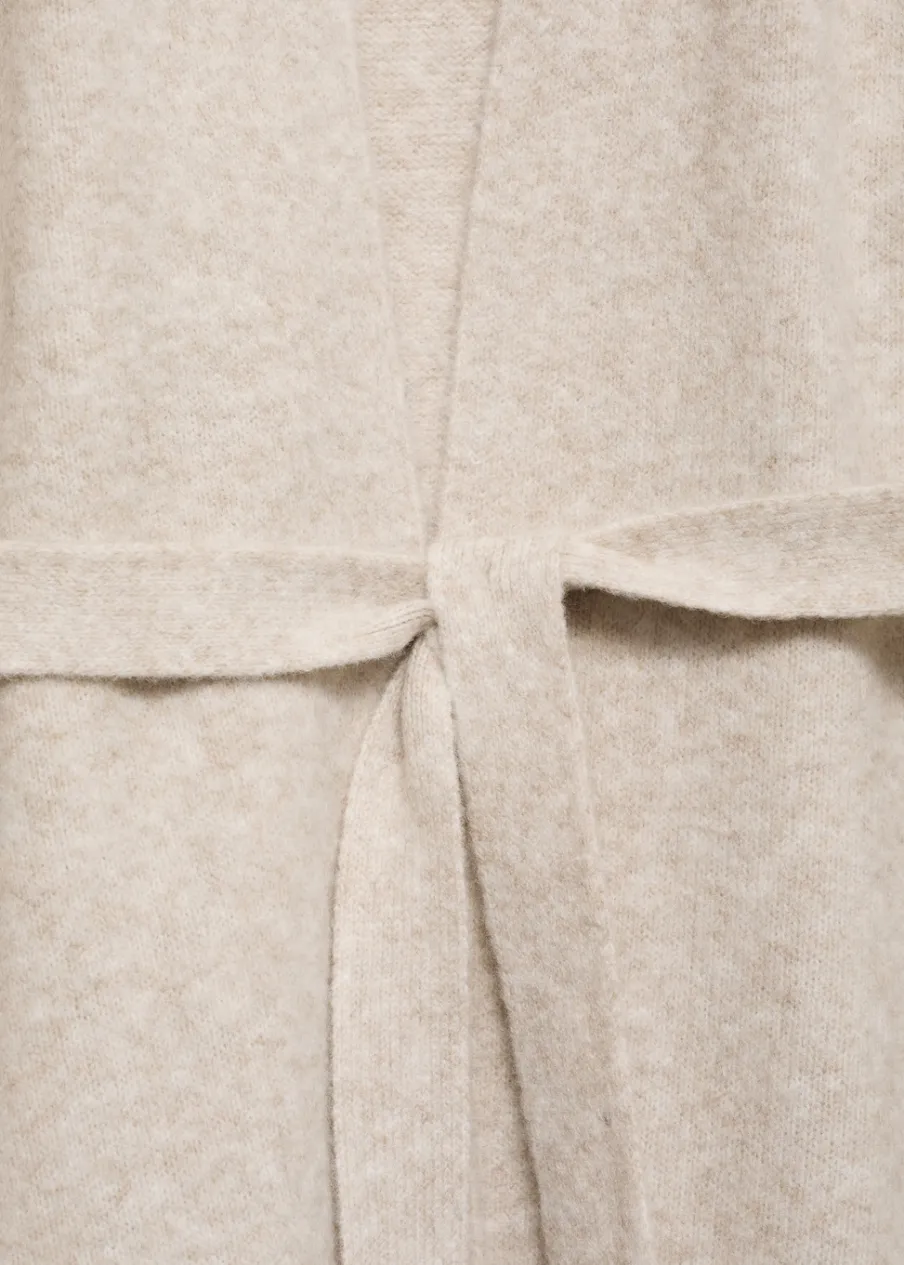 OpisDzianina średniej grubości. Krój do kolan. Zakładany dekolt V. Długi rękaw. Dekoracyjny pasek. Total look.