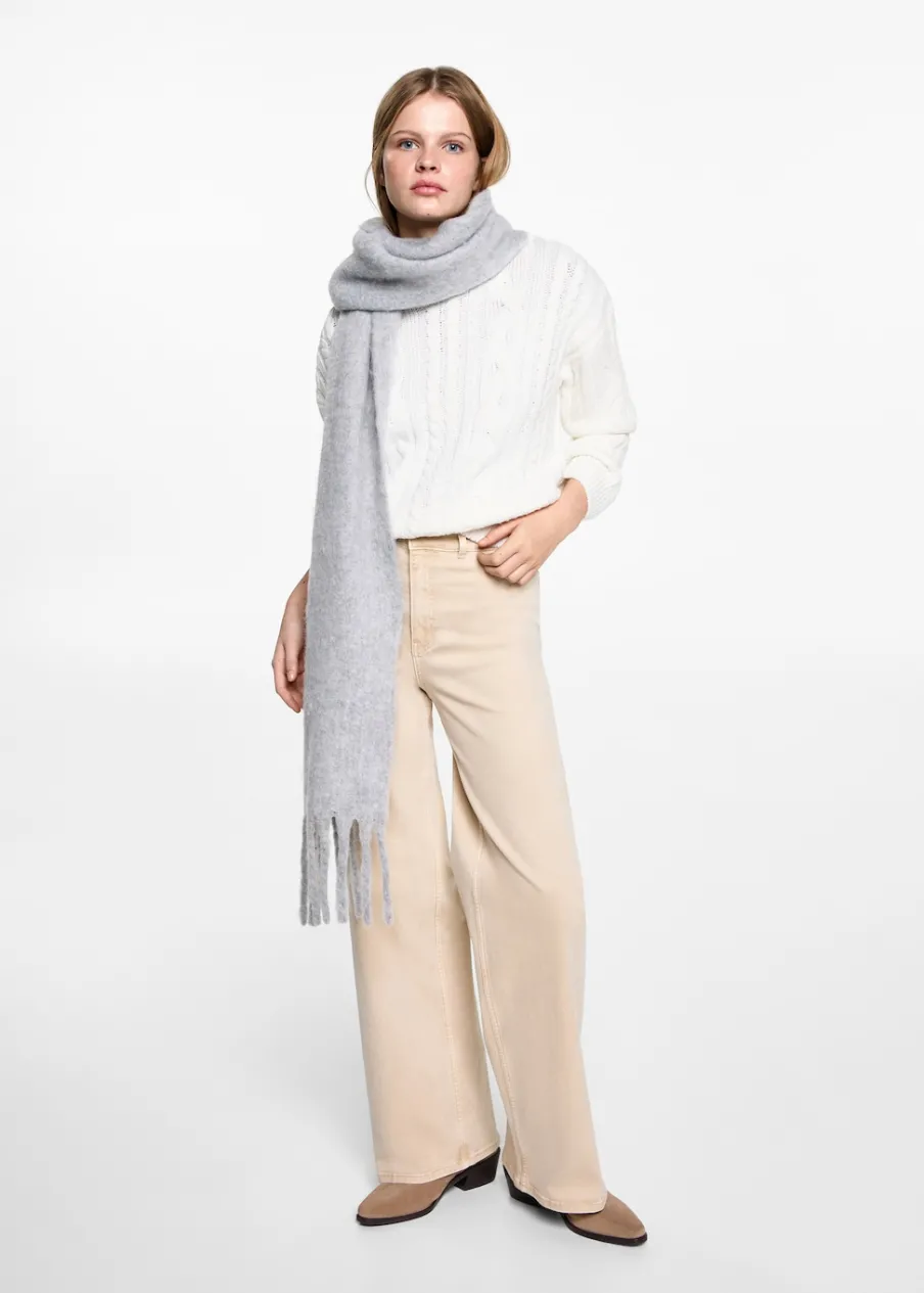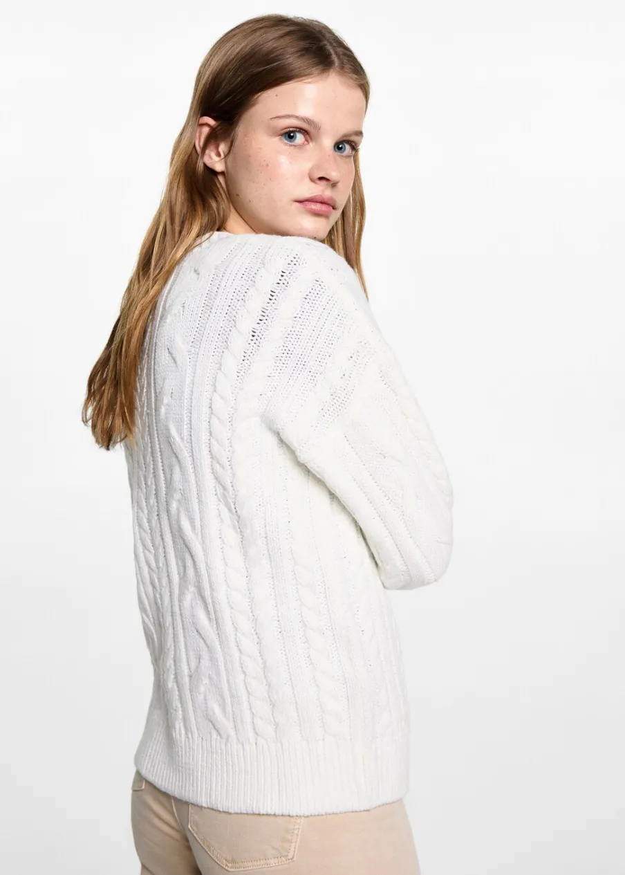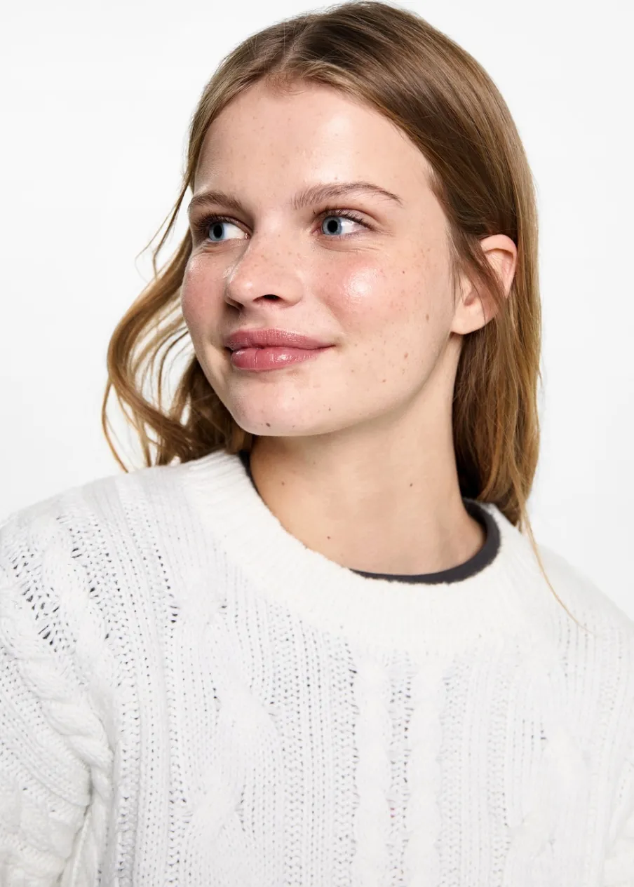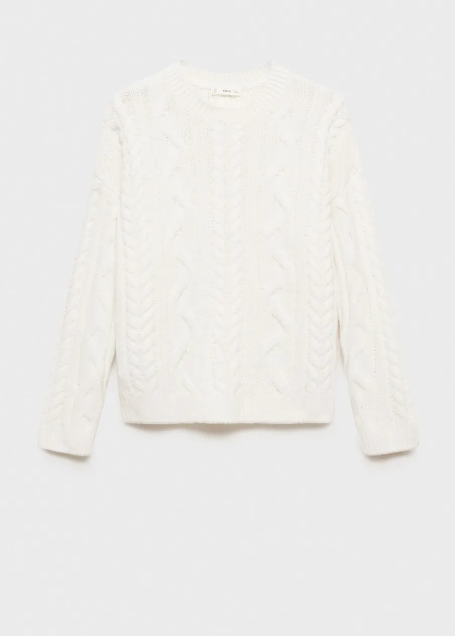 Dzianina. Dzianina ze ściegiem w ósemki. Okrągły dekolt. Długi rękaw.