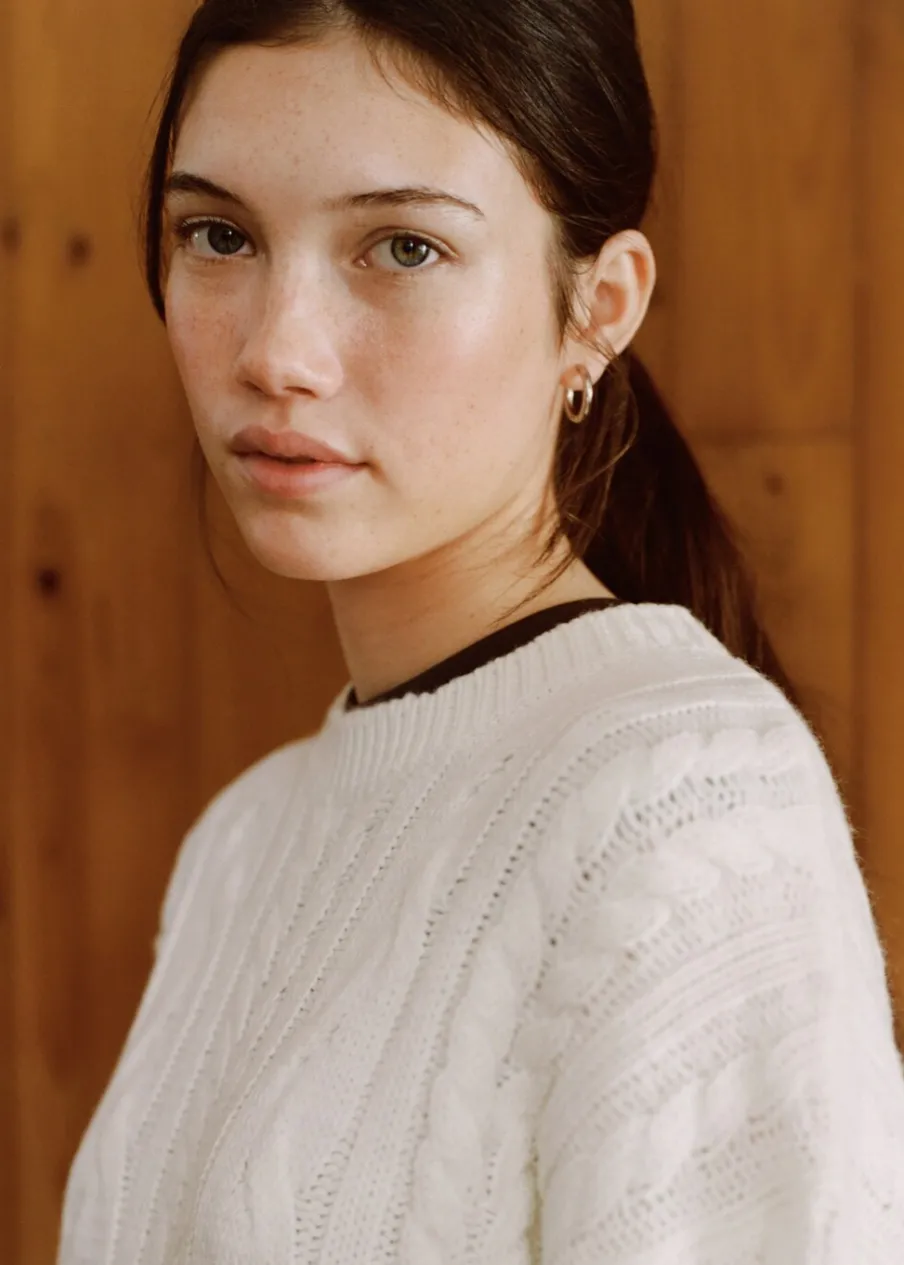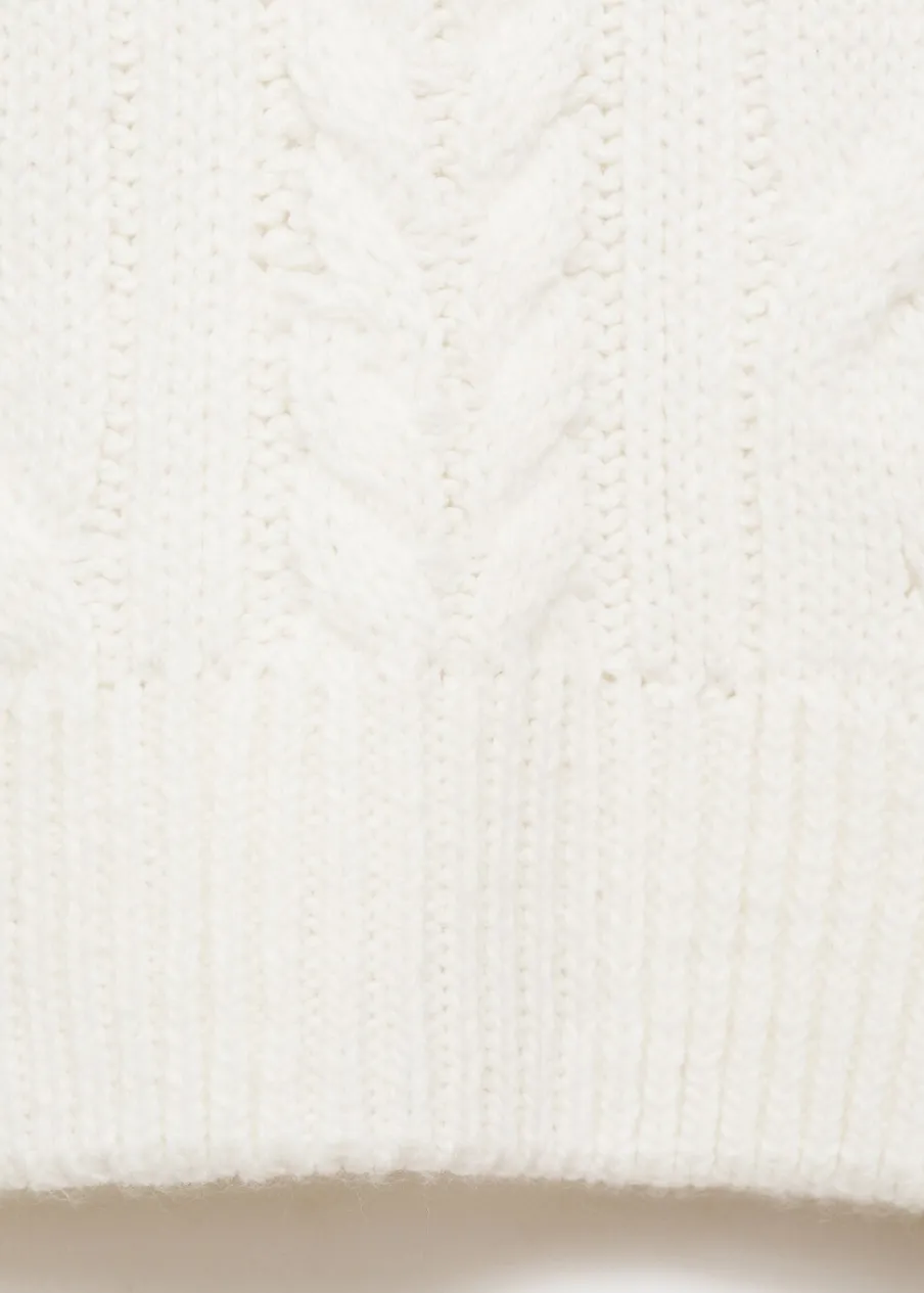 OpisDzianina. Dzianina ze ściegiem w ósemki. Okrągły dekolt. Długi rękaw.