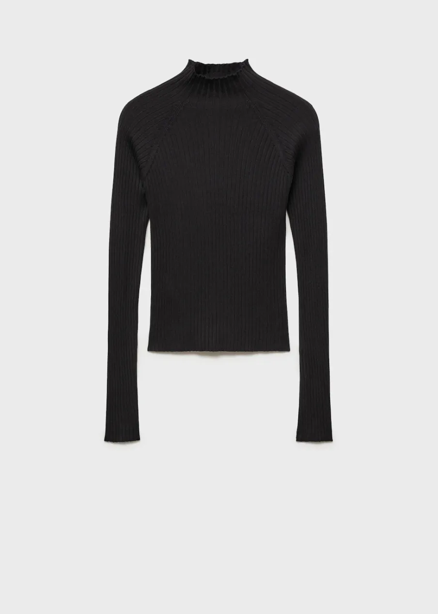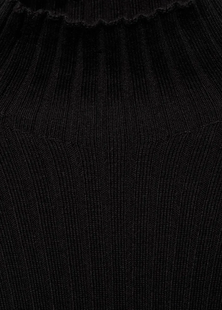 Prążkowana tekstura. Golf. Długi rękaw. Slim-fit. Modelka ma 172 cm wzrostu i nosi rozmiar M.
