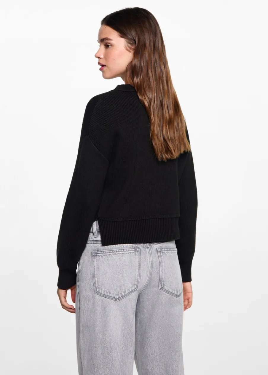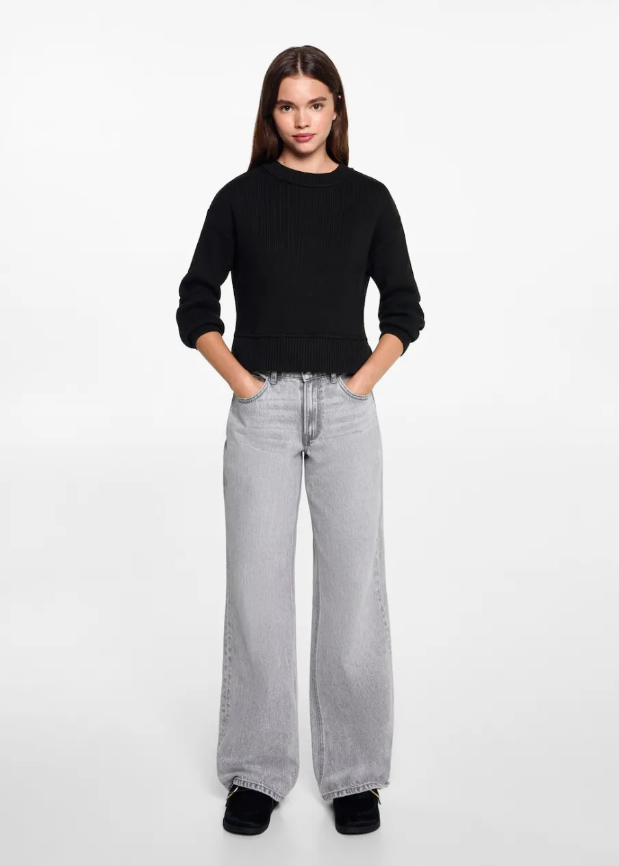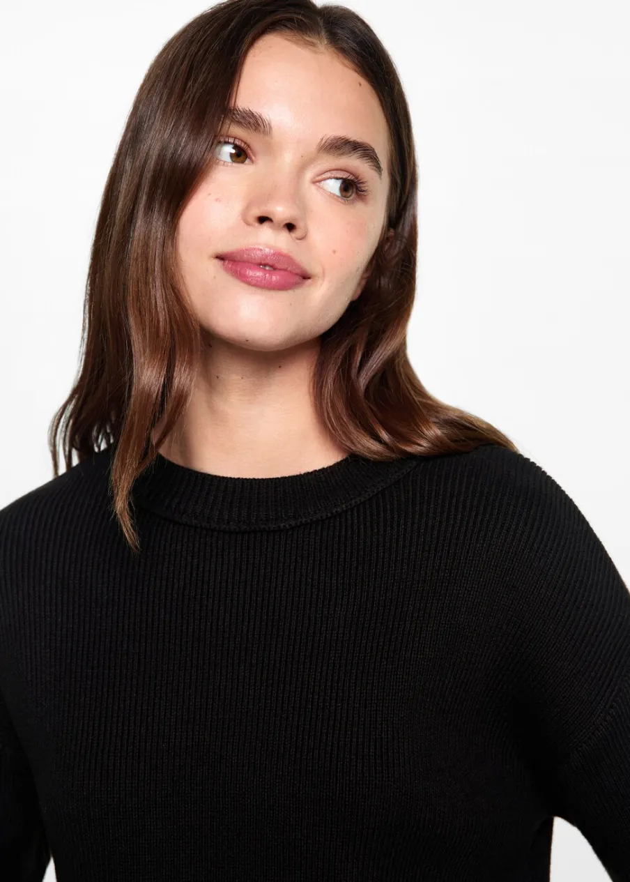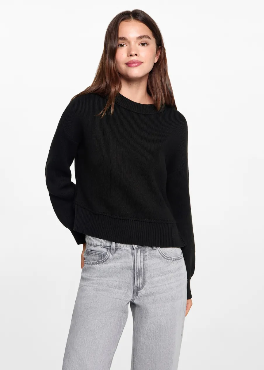 100% bomull. Model prosty. Okrągły dekolt. Długi rękaw. Modelka ma 172 cm wzrostu i nosi rozmiar M. Dzianinowa tkanina.