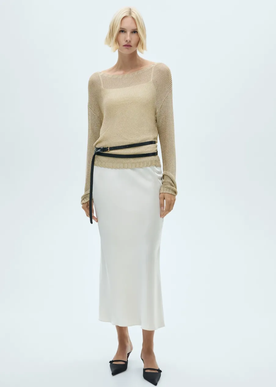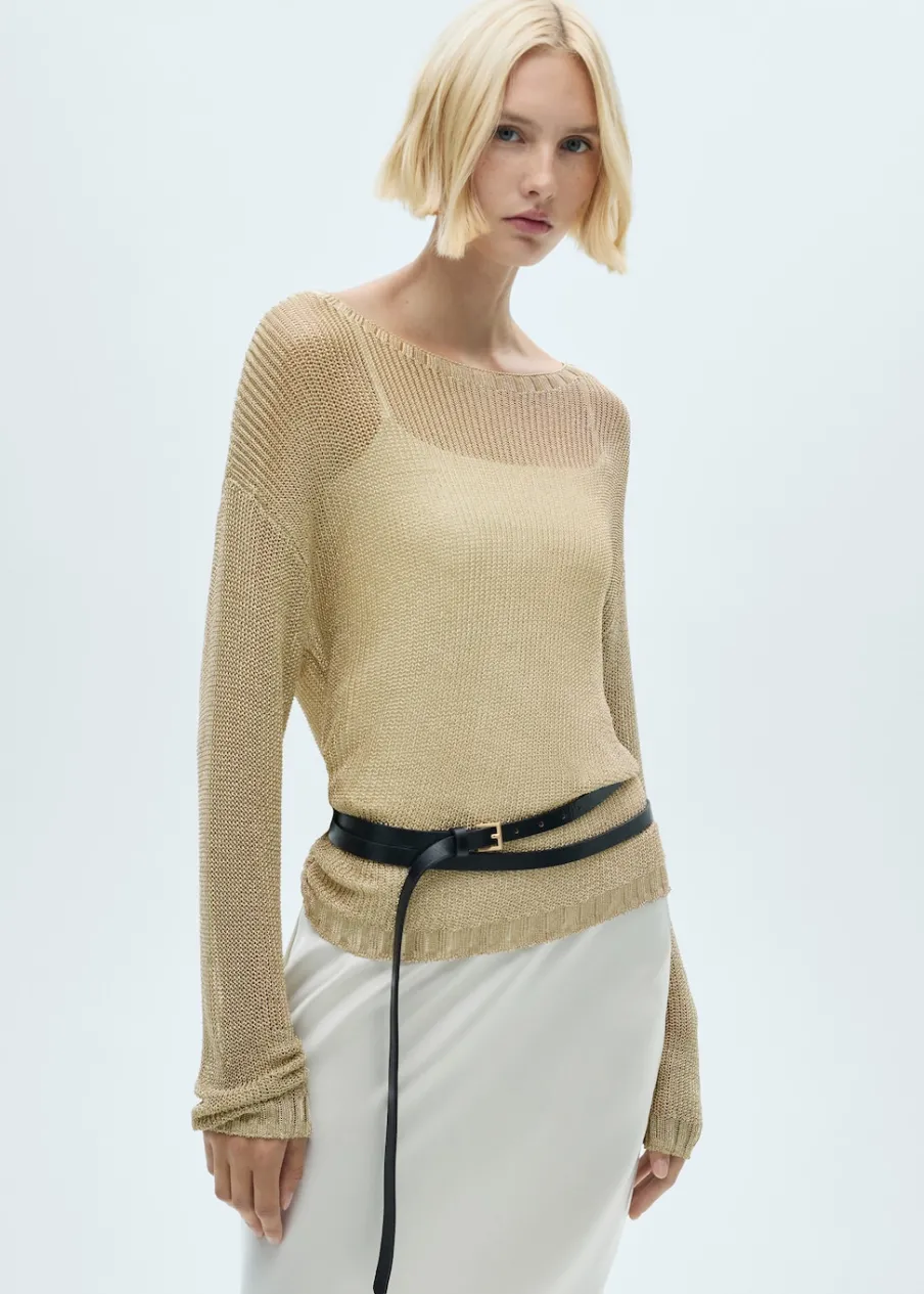 Dzianinowa tkanina. Tkanina lureks. Model prosty. Dekolt w kształcie łódki. Długi rękaw. Bez zapięcia. Ściągaczowe wykończenia. Kolekcja wizytowa.