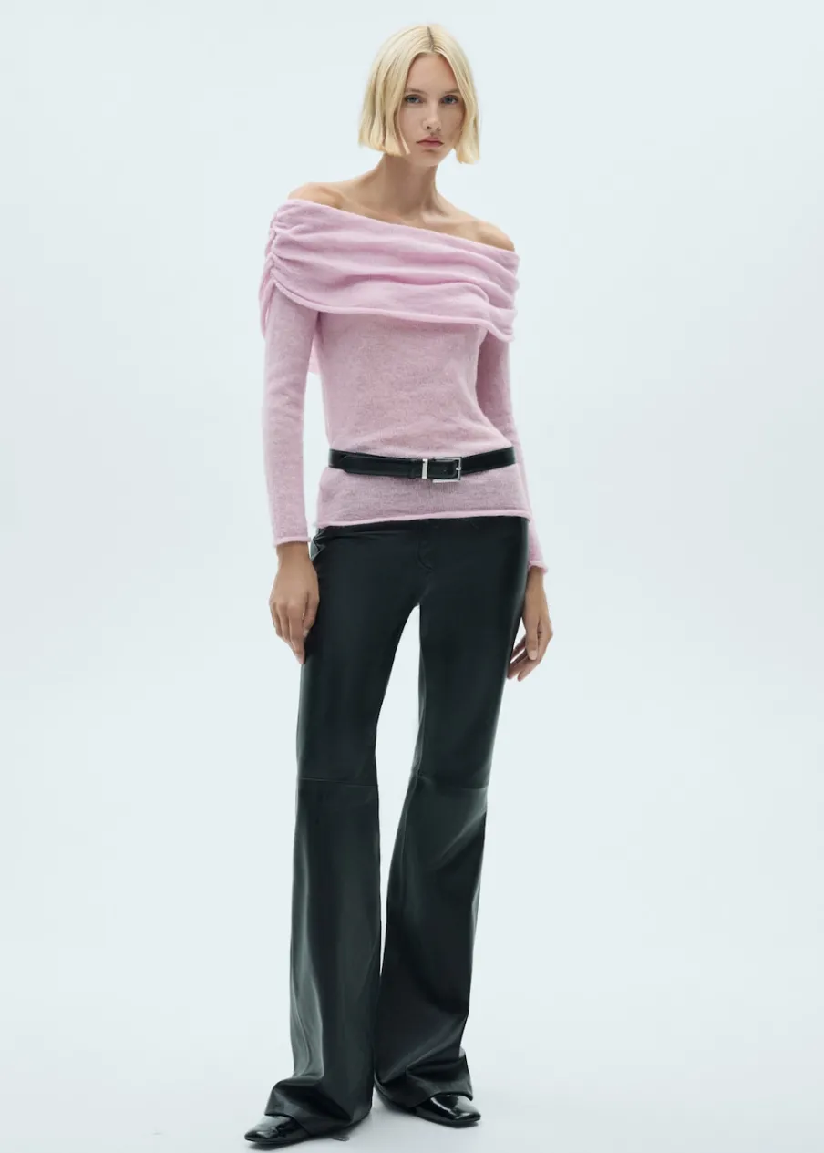 Dzianinowa tkanina. Marszczony detal. Dekolt V. Długi rękaw. Modelka ma 179 cm wzrostu i nosi rozmiar S/36. Bez zapięcia. Model standardowy. Slim-fit. Dzianina średniej grubości. Golf.