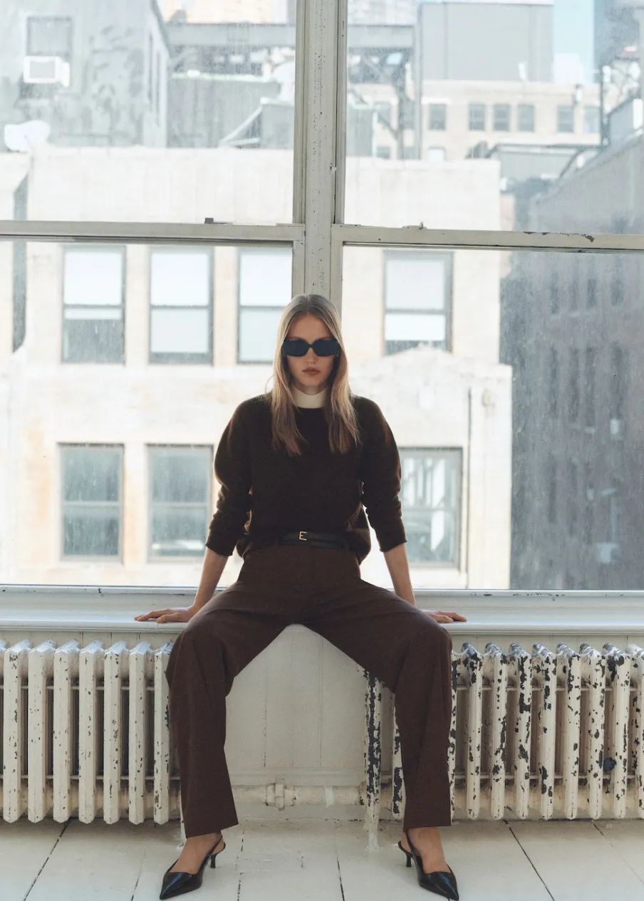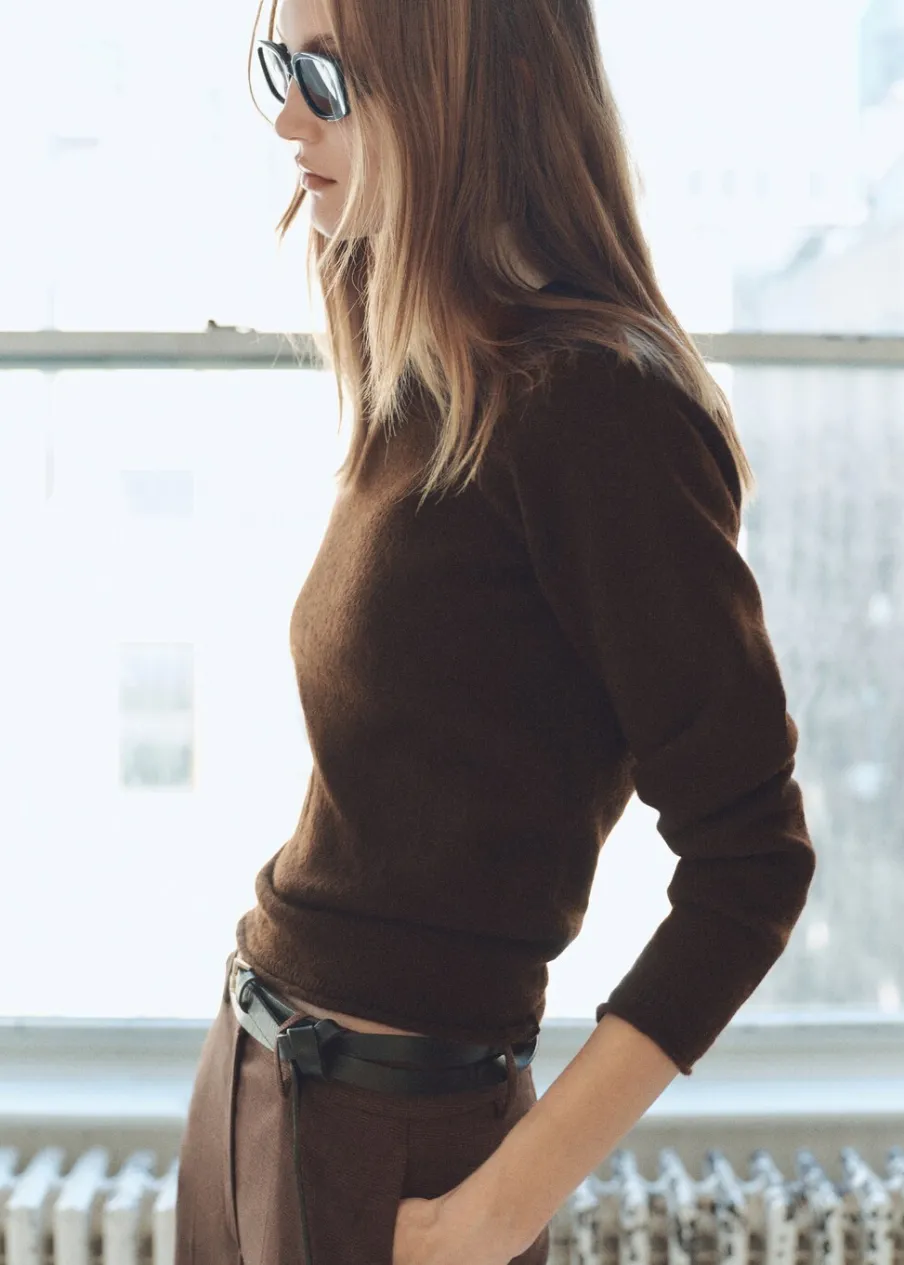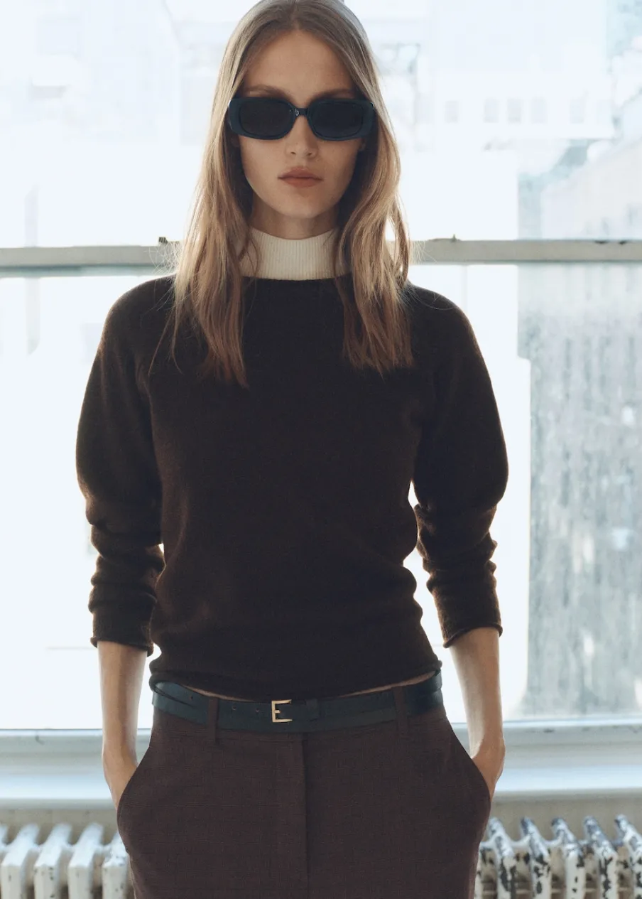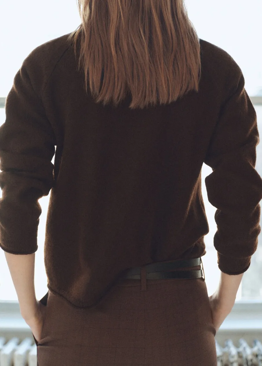 Dzianina o średniej grubości. Model prosty. Okrągły dekolt. Długi rękaw. Bez zapięcia.