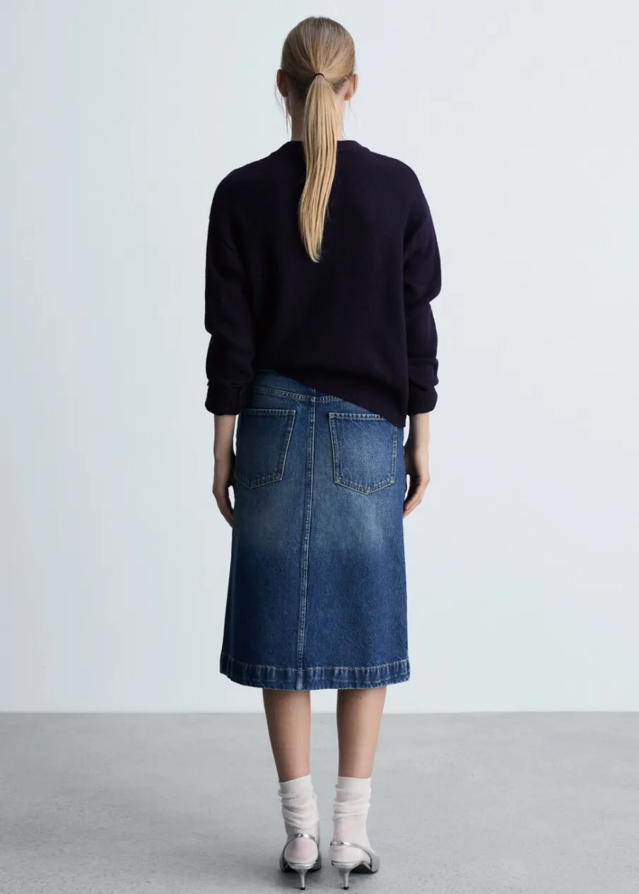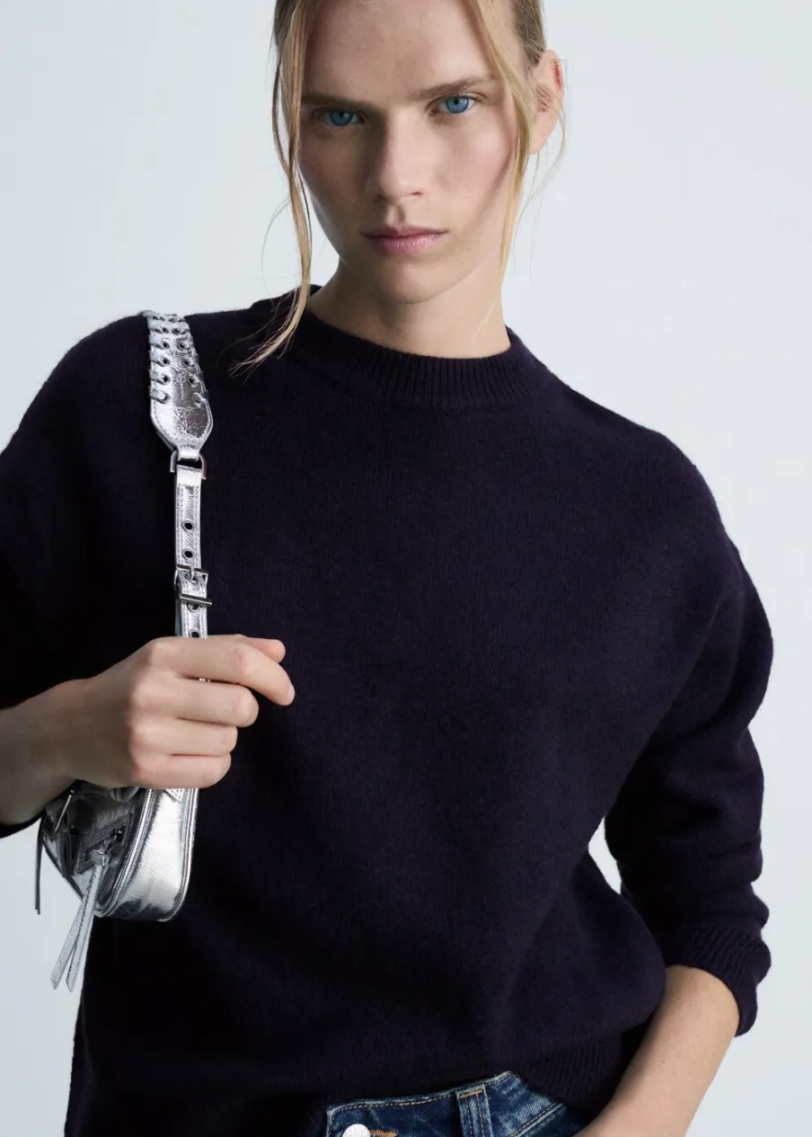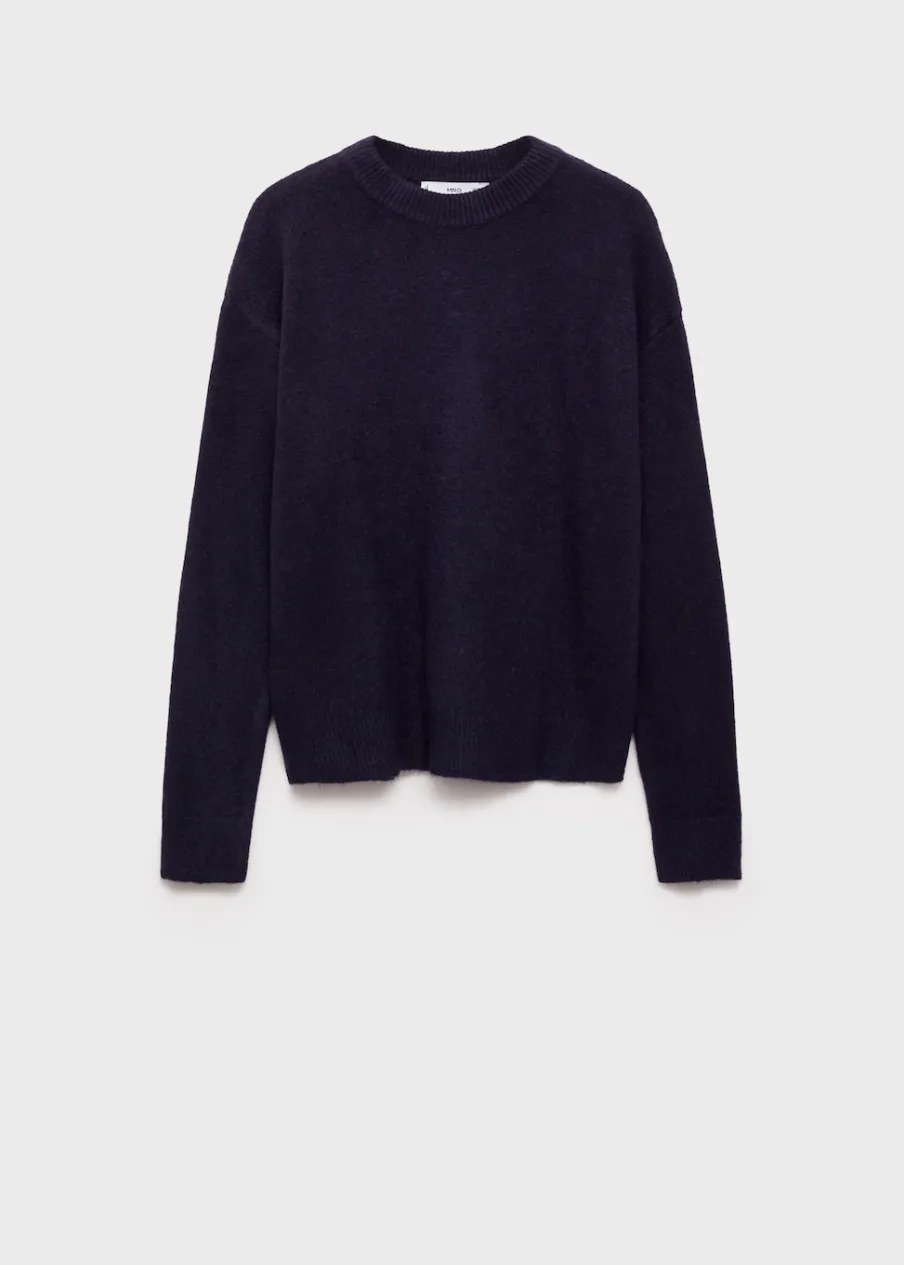 Dzianinowa tkanina. Modelka ma 178 cm wzrostu i nosi rozmiar S/36. Model prosty. Długi rękaw. Dostępne w Plus Size. Okrągły dekolt.