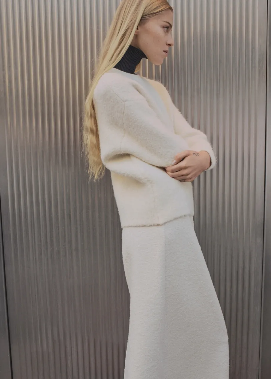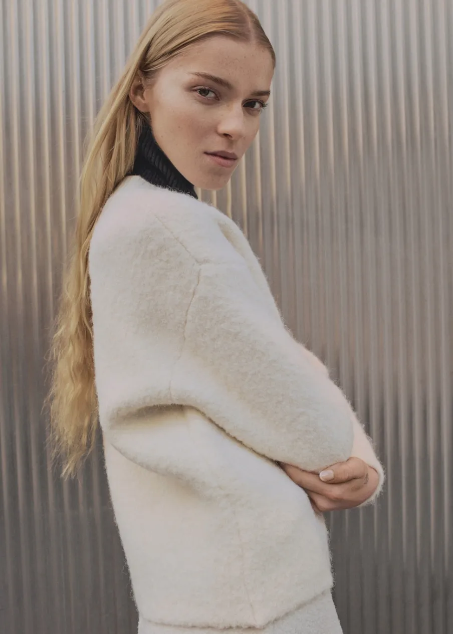 Tkanina mieszanka wełny. Tkanina z grubej dzianiny. Model prosty. Okrągły dekolt. Długi rękaw. Gładkie wykończenie. Total look.