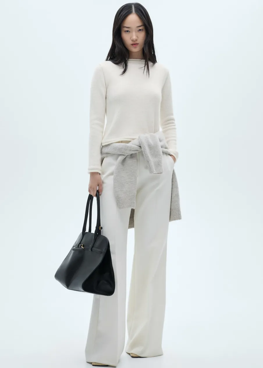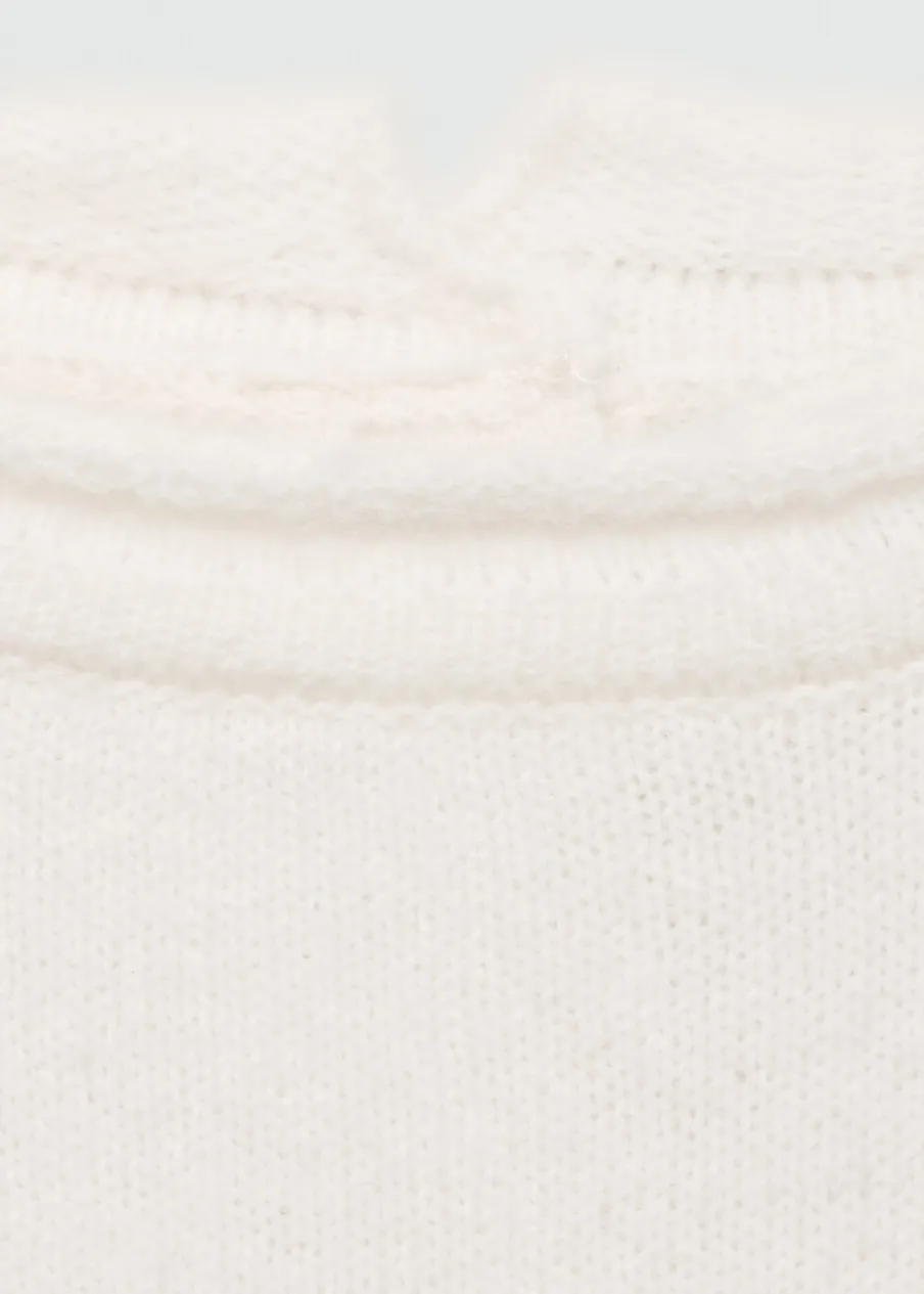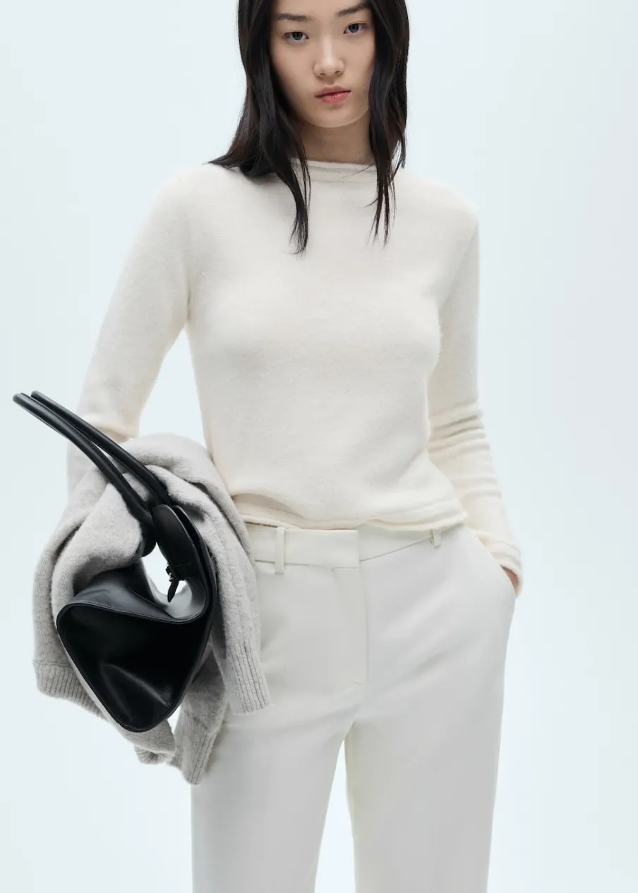 Dzianina średniej grubości. Tkanina mieszanka wełny. Model prosty. Okrągły dekolt. Długi rękaw. Zapięcie z tyłu na guziki. Modelka ma 175 cm wzrostu i nosi rozmiar S/36.
