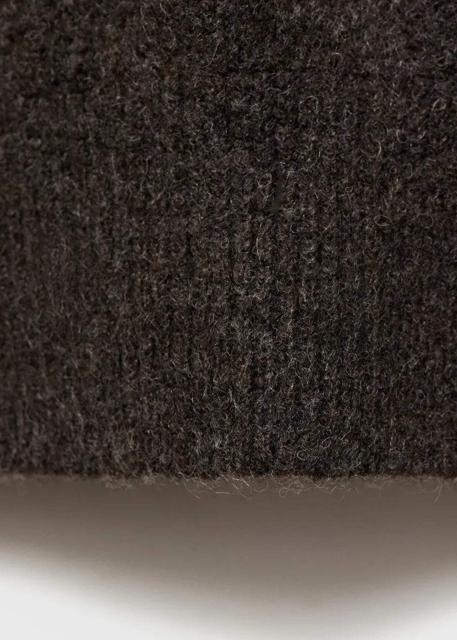 OpisTkanina z grubej dzianiny. Model prosty. Półgolf. Ozdobne szwy. Ściągaczowe wykończenia.