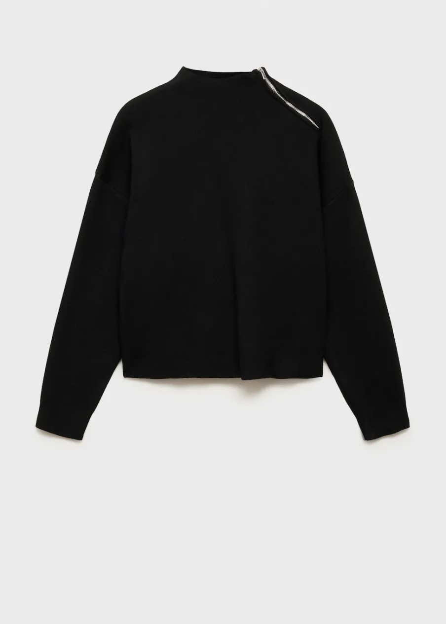 Dzianina o średniej grubości. Model prosty. Półgolf. Wysoki kołnierz z zapięciem na zamek. Długi rękaw. Ściągaczowe wykończenia.